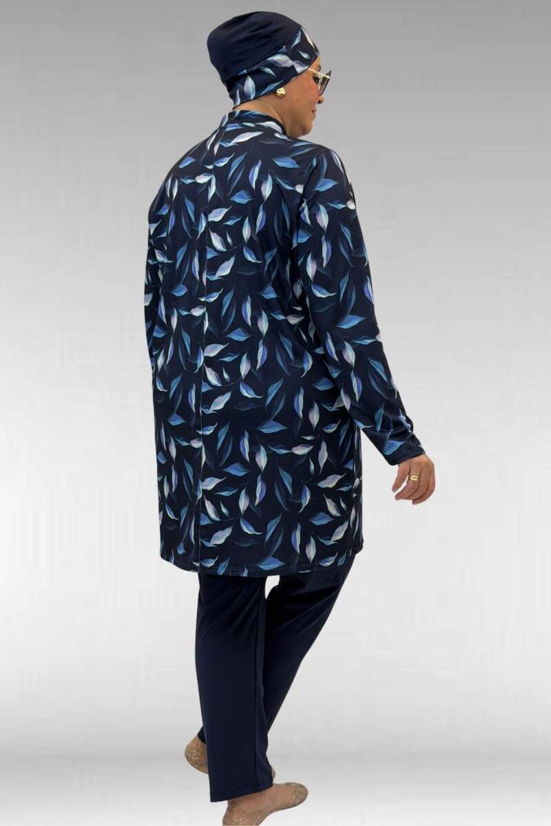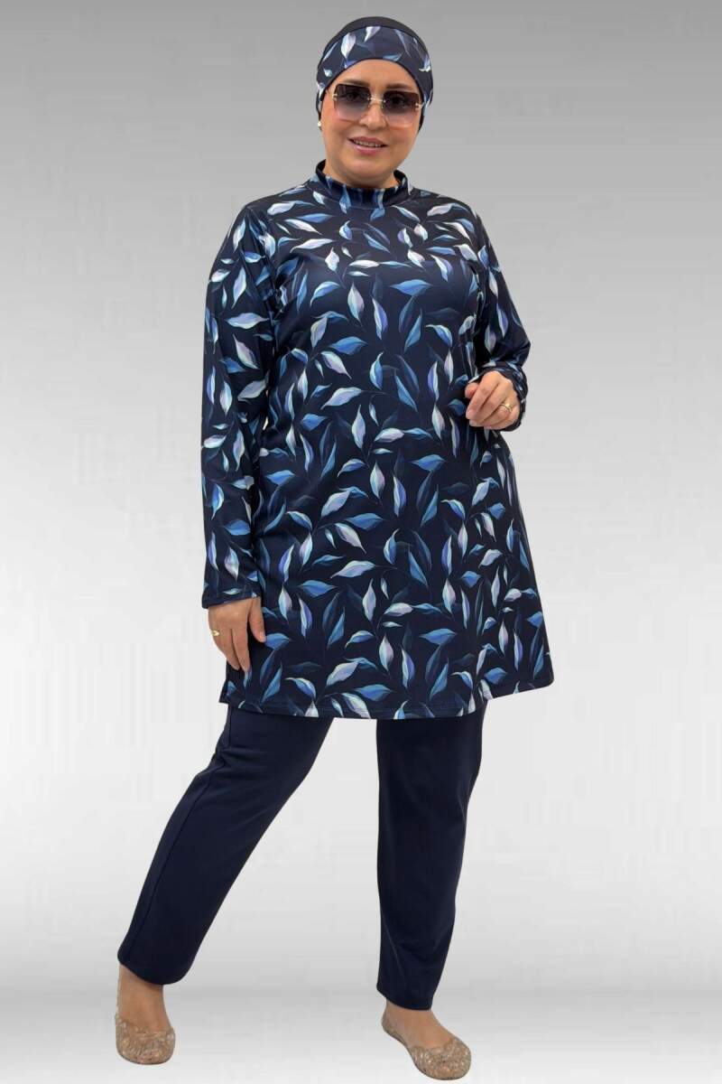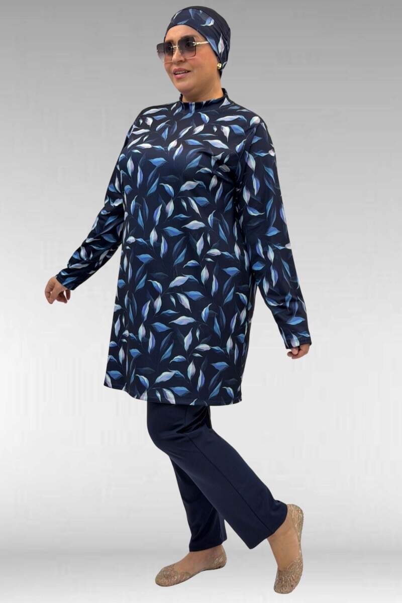 1727 Büyük Beden Uzunkol Tesettür Mayo Takım - Laci Yaprak Desenli-Laci