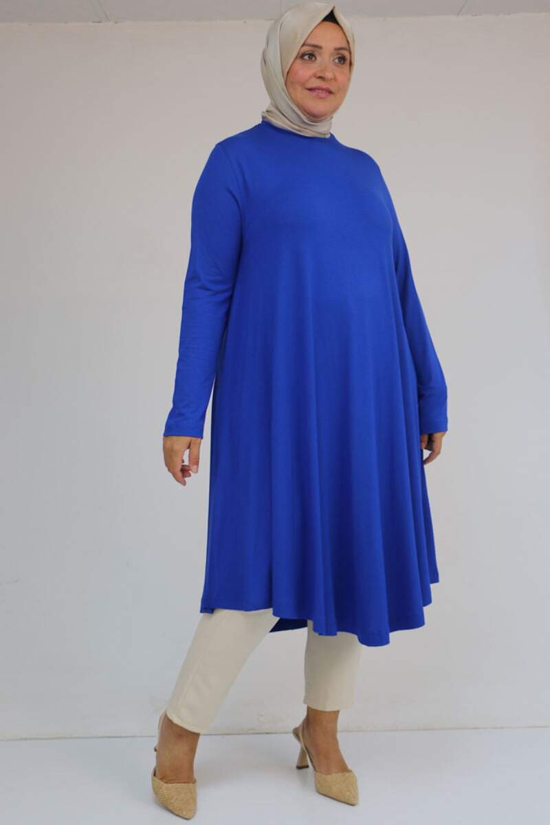 28016 Büyük Beden Penye Mevlana Tunik - Saks