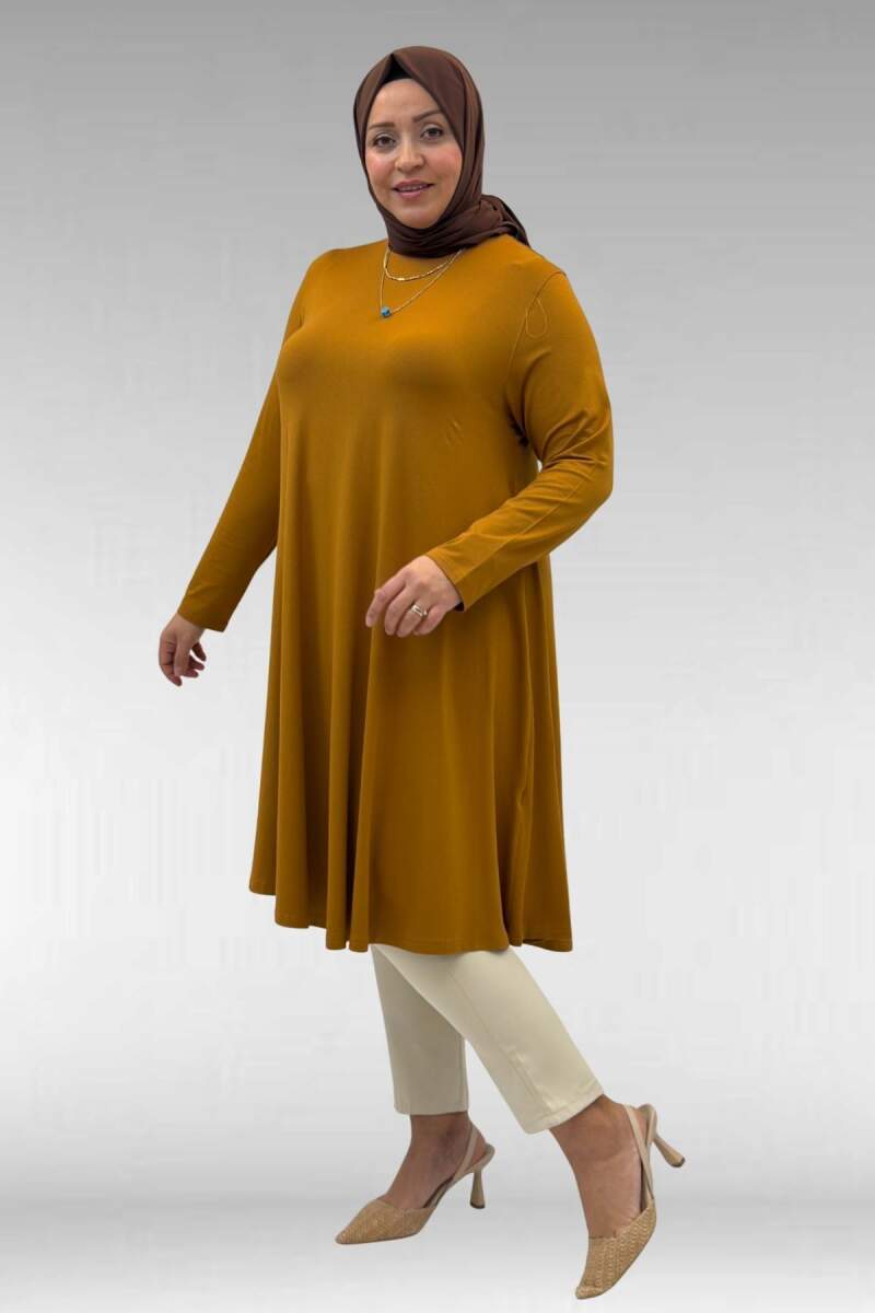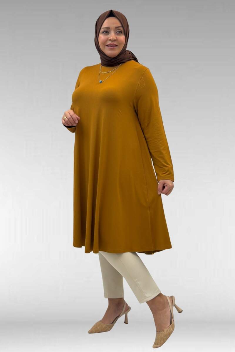 28016 Büyük Beden Penye Mevlana Tunik - Tütün