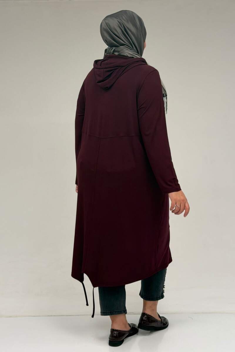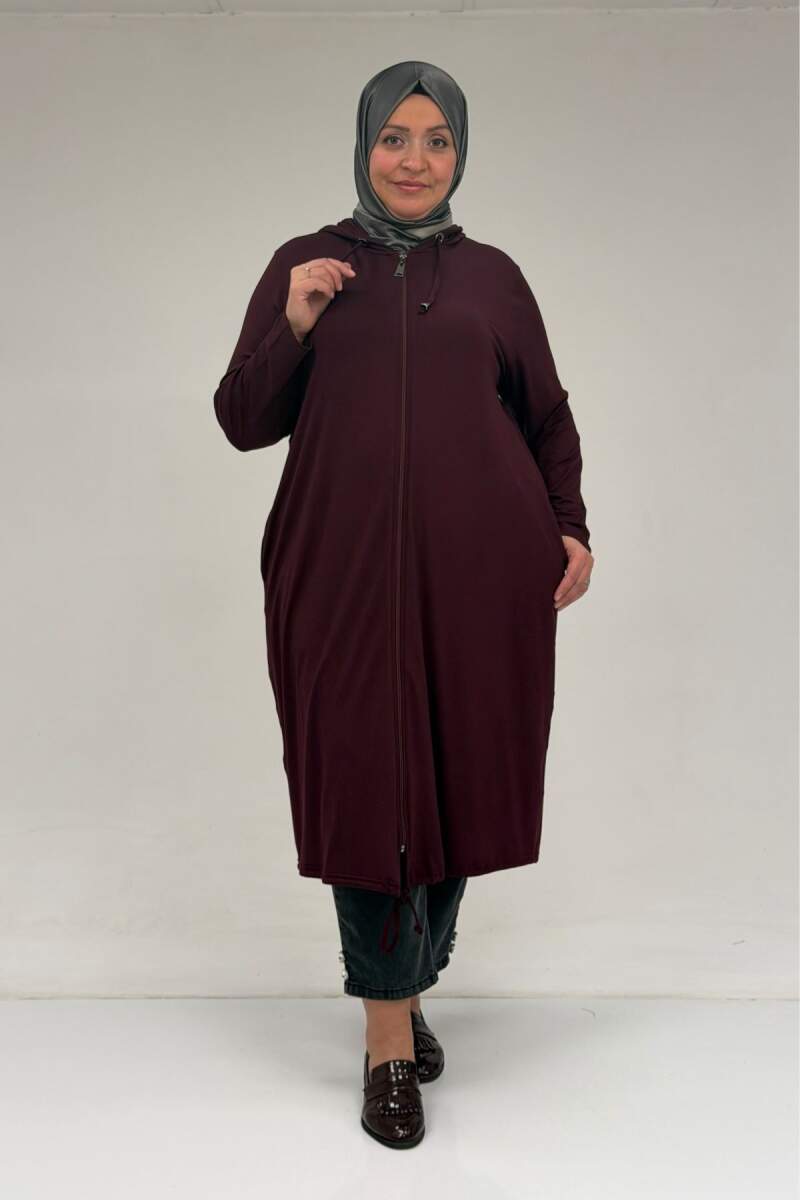 33008 Büyük Beden Fermuarlı Penye Kap - Bordo