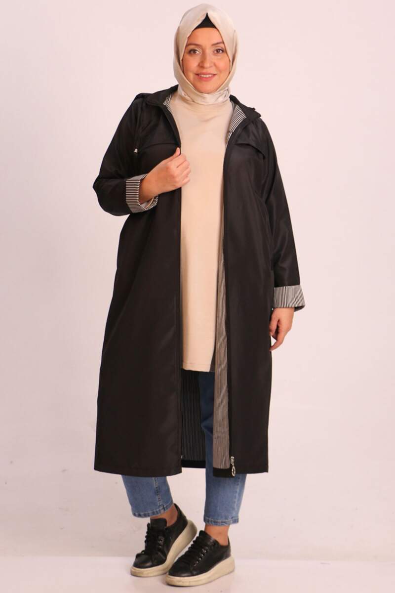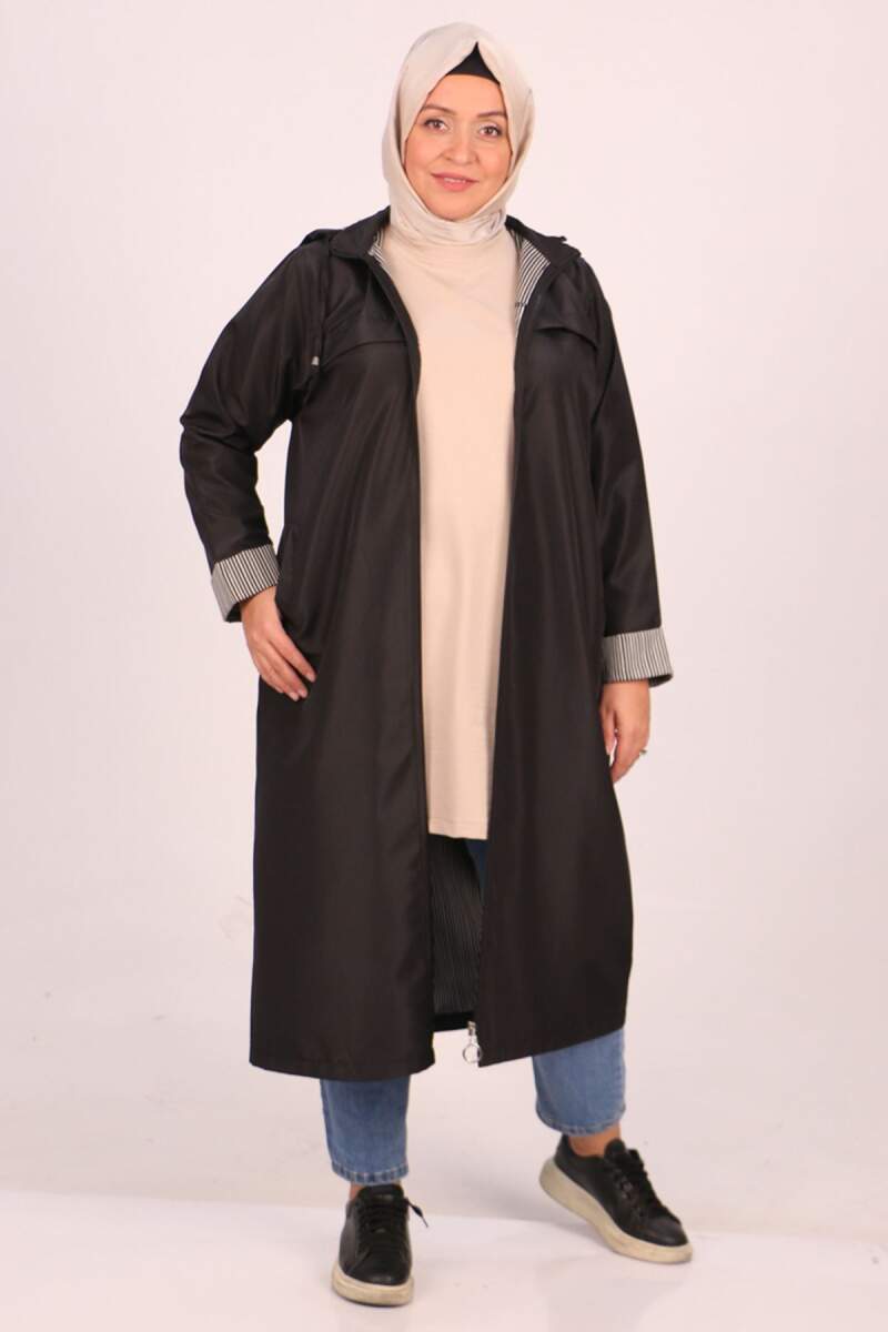 33068 Büyük Beden Çıkarılabilir Kapüşonlu Bondit Kap-Siyah
