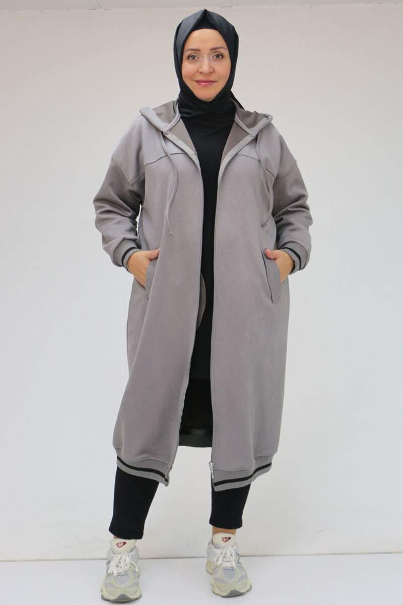 33074 Büyük Beden Nubuk Ribanalı Kap - Gri