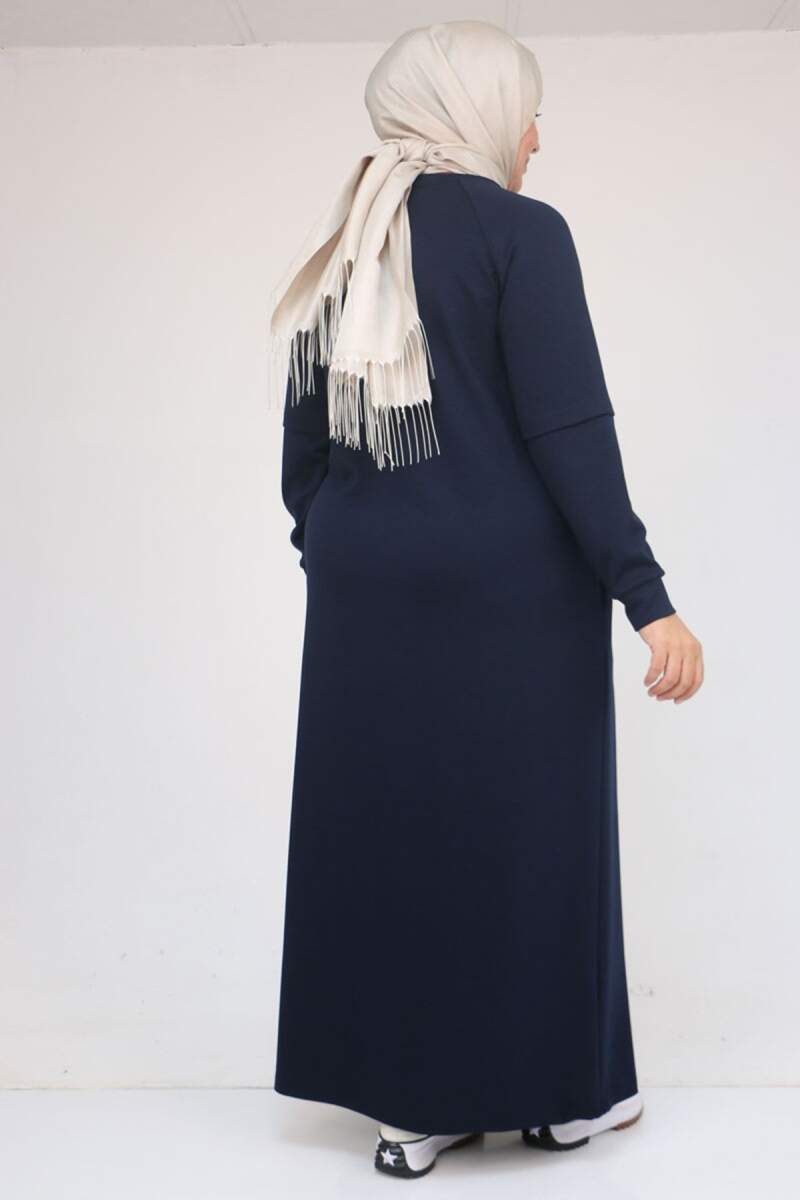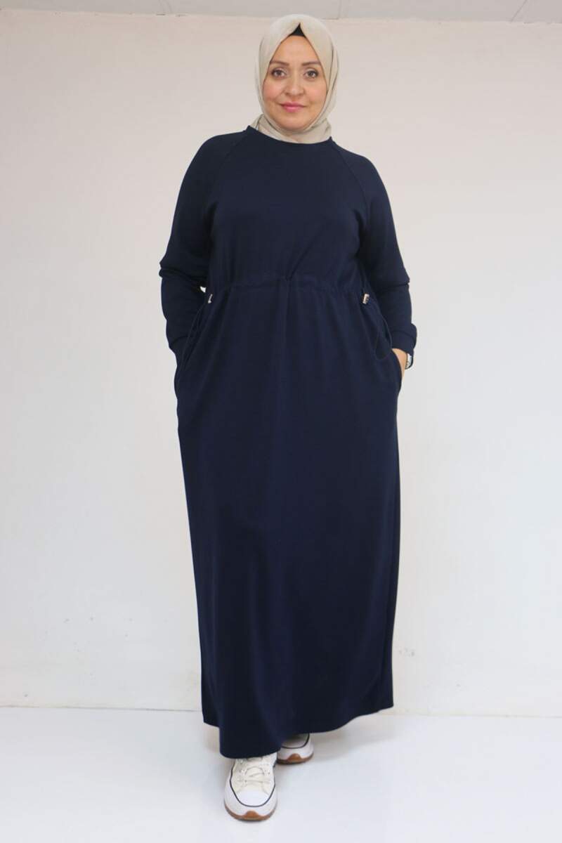 42032 Büyük Beden Beli Lastikli Modal Elbise - Lacivert