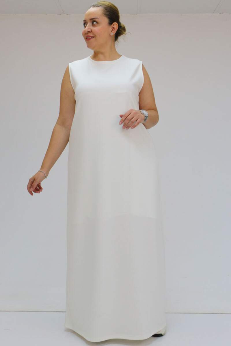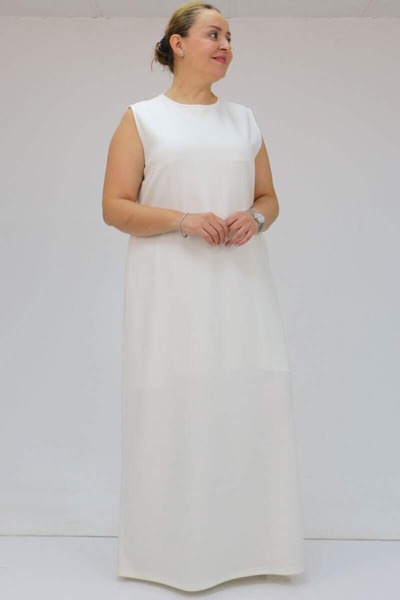 42050 Büyük Beden Modal Kolsuz Elbise - Ekru