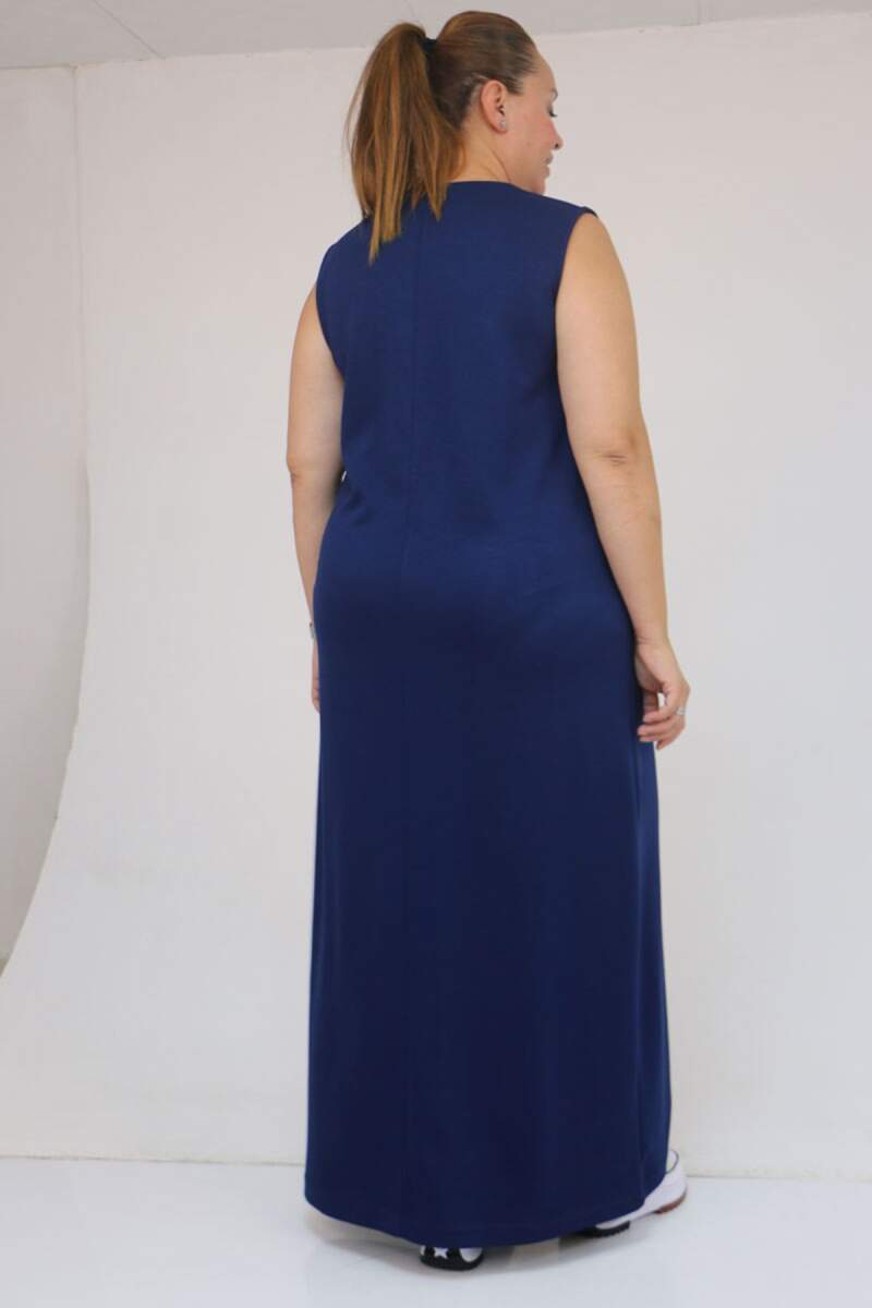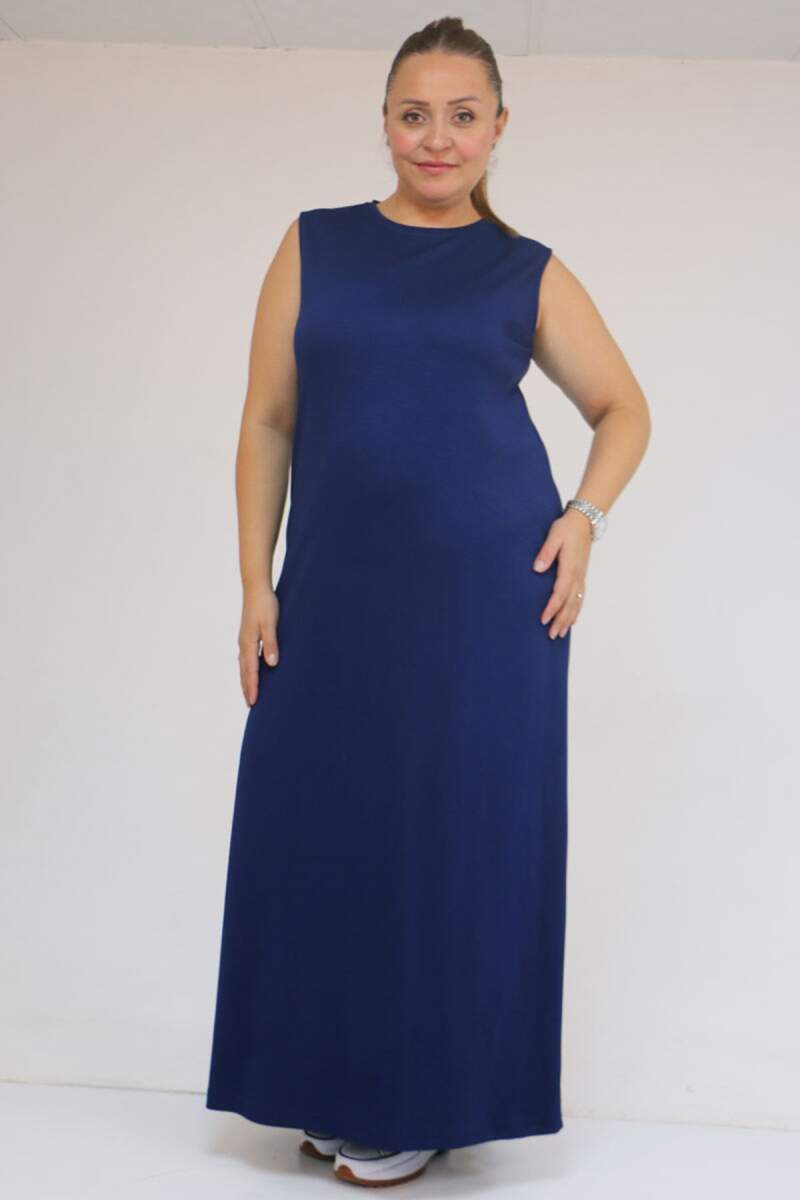 42050 Büyük Beden Modal Kolsuz Elbise - İndigo