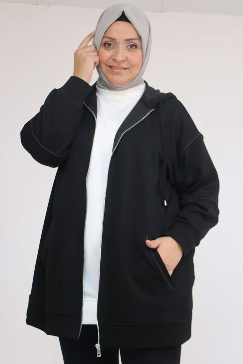 43072 Büyük Beden Waterport Biyeli Oysho Ceket - Siyah