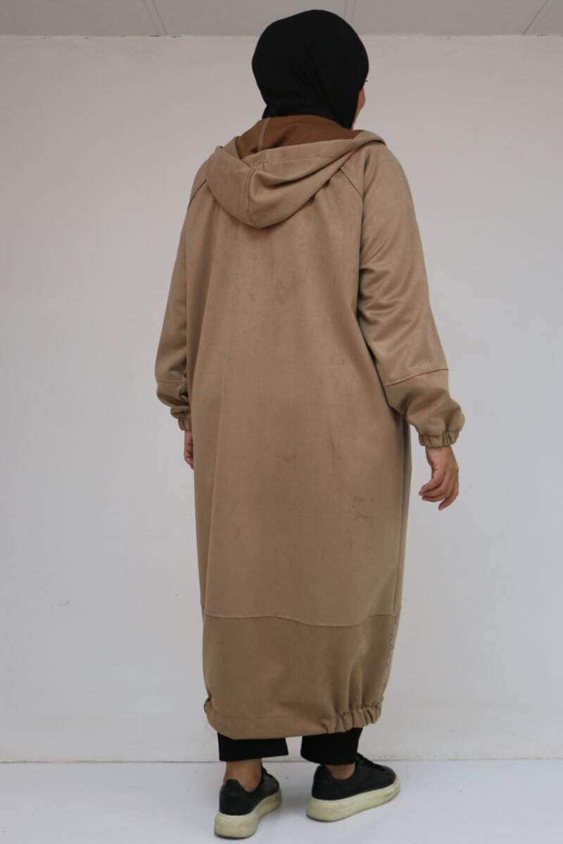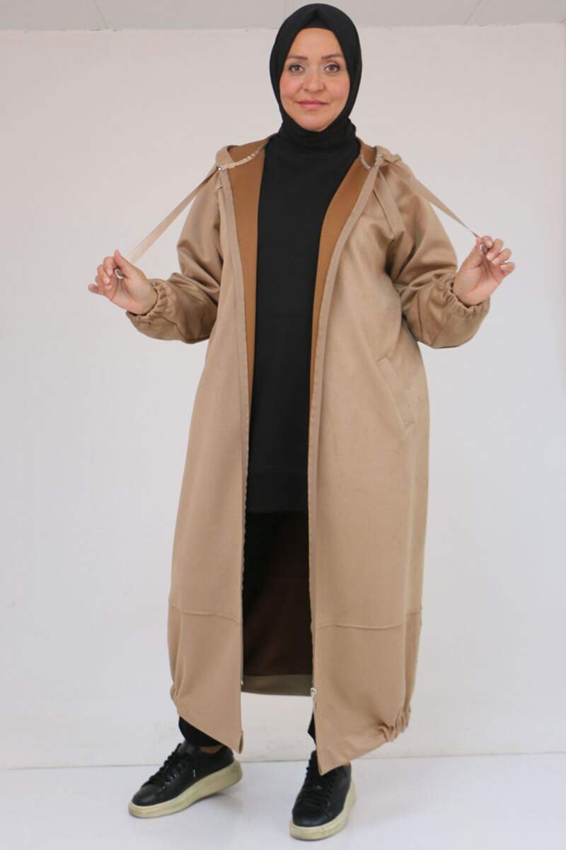 43078 Büyük Beden Kolları Lastikli Pat Detaylı Nubuk Kap - Vizon