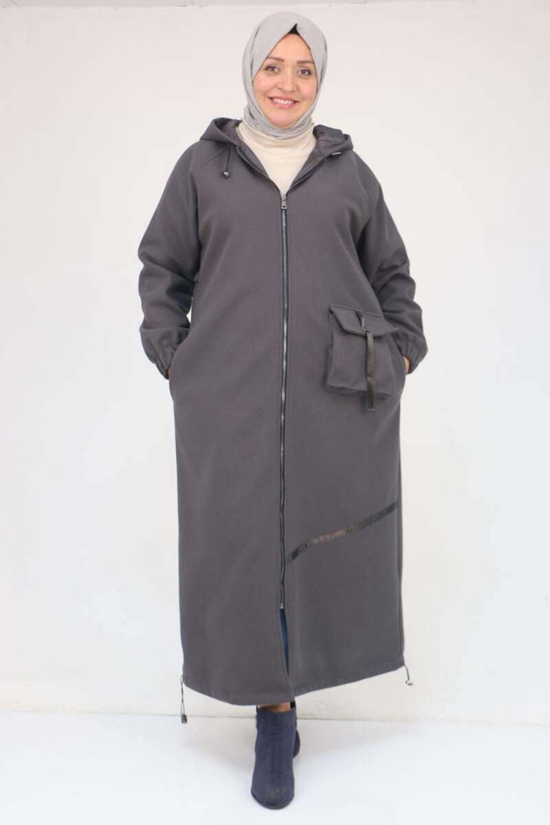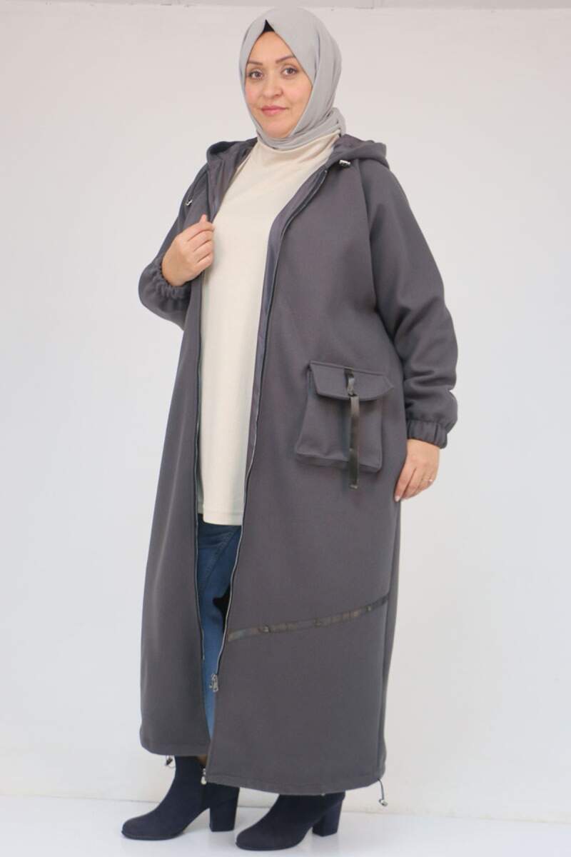 43082 Büyük Beden Eteği Bebe Lastikli Kaşe Kaban - Antrasit