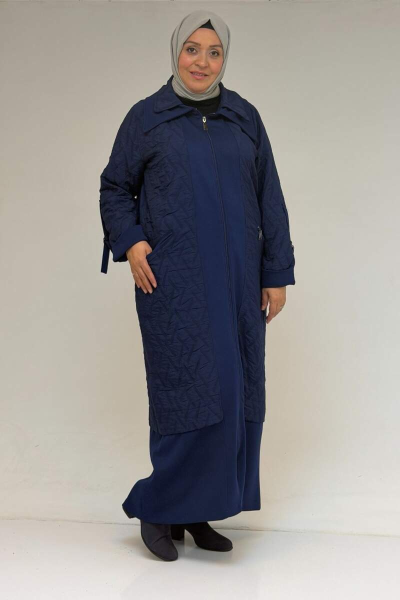 46018 Büyük Beden Fermuar Cepli Modal-Kapitone Kaban - İndigo-İndigo