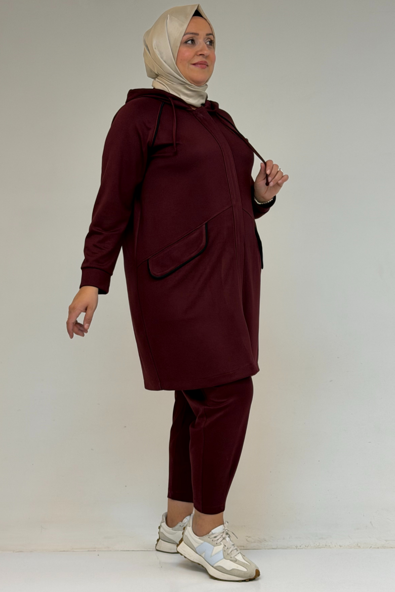 47068 Büyük Beden Çıtçıt Detaylı Modal Tunik - Bordo