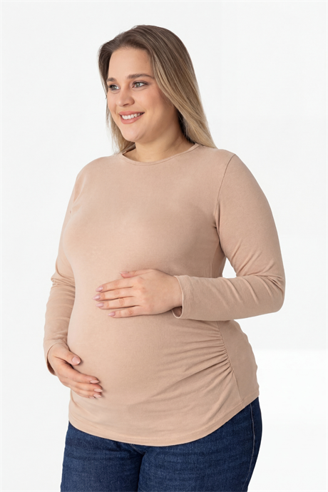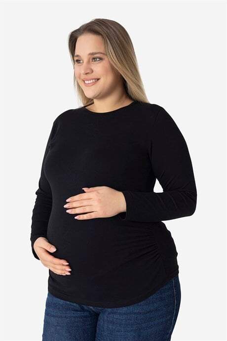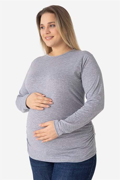Hamilelik döneminde konfor ve şıklığı bir arada sunan bisiklet yaka tasarımıyla günlük kullanıma uygundur.