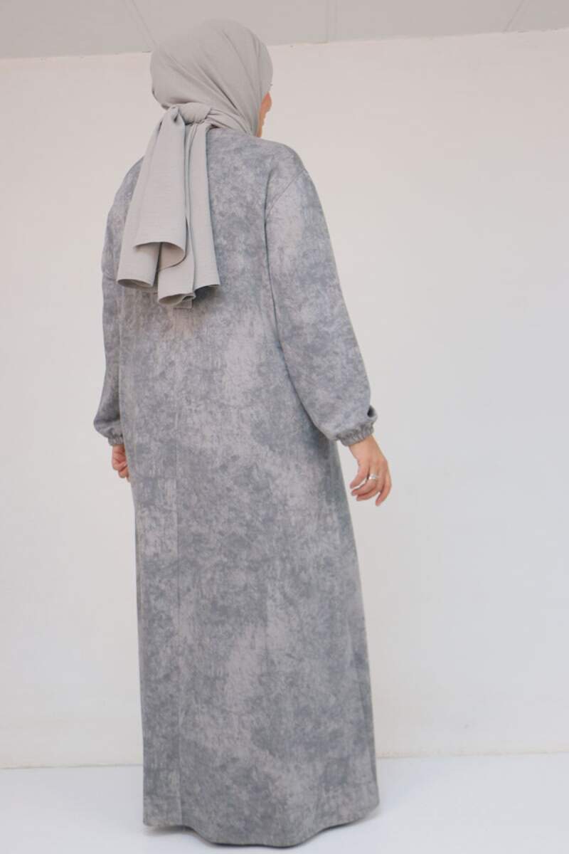 52030 Büyük Beden Kolu Lastikli Modal Elbise - Batik Gri