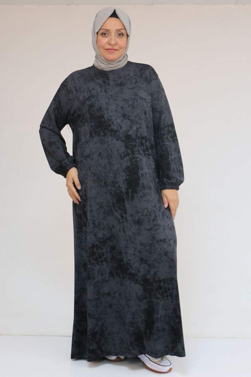 52030 Büyük Beden Kolu Lastikli Modal Elbise - Batik Siyah