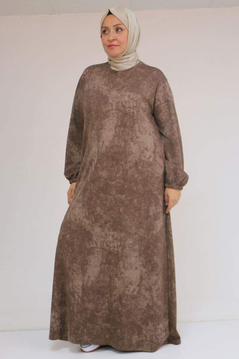 52030 Büyük Beden Kolu Lastikli Modal Elbise - Batik Vizon
