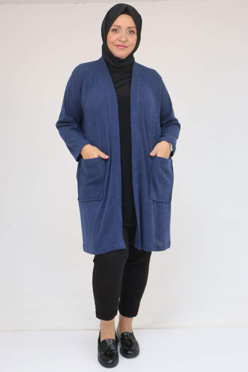53034 Büyük Beden Cep Detaylı Mir Ceket - İndigo