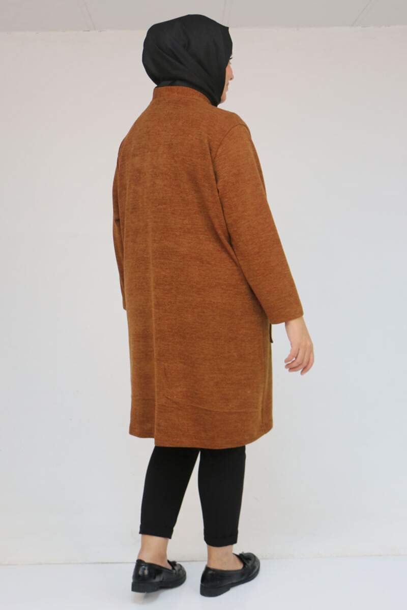 53034 Büyük Beden Cep Detaylı Mir Ceket - Taba