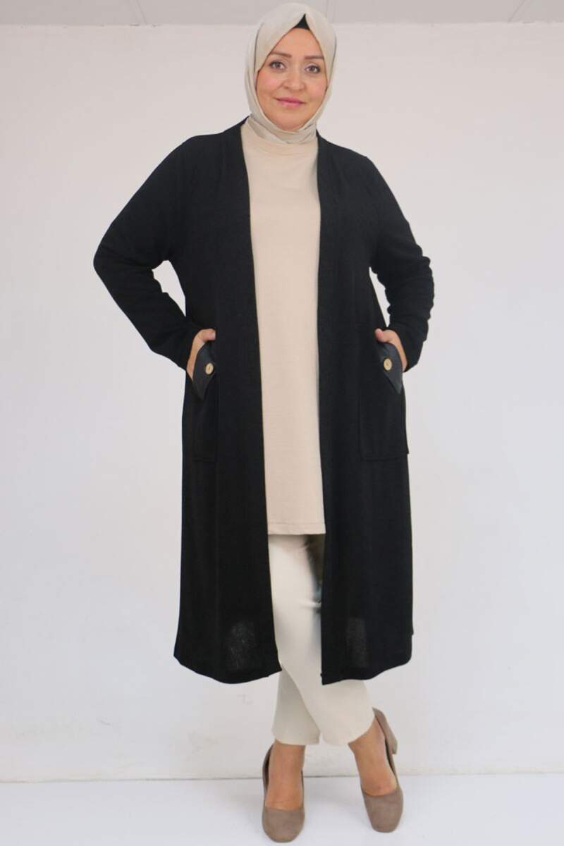 53035 Büyük Beden Cep Detaylı Mir Ceket - Siyah