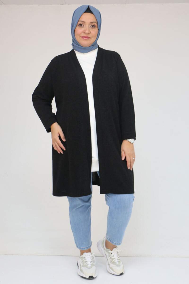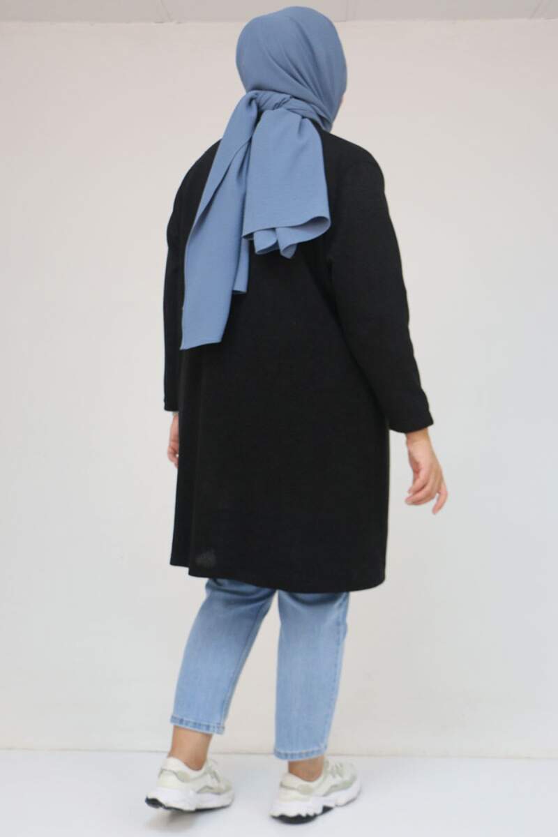 53036 Büyük Beden Omzu Taş Detaylı Mir Ceket - Siyah