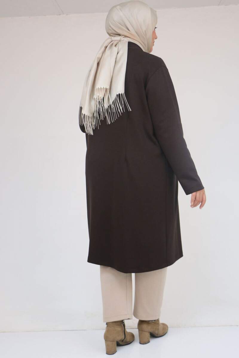 53048 Büyük Beden Cepli Uzun Modal Ceket - Kahve