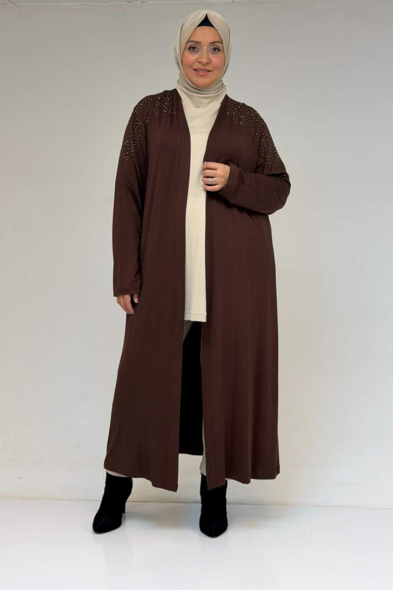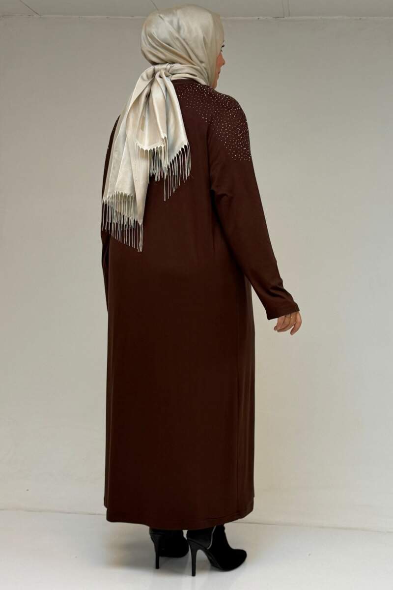 53069 Büyük Beden Omzu Taş Detaylı Penye Tunik - Kahve