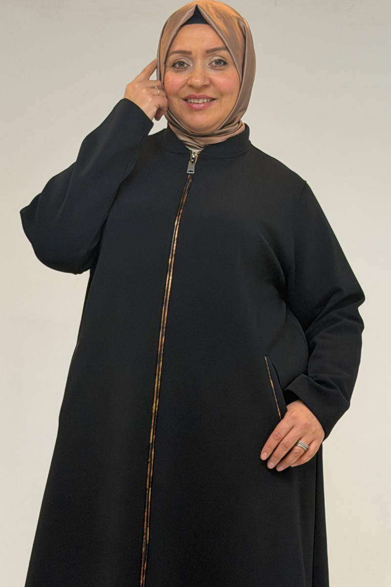 53072 Büyük Beden Kıstırma Biyeli Fermuarlı Çelik Kap - Siyah