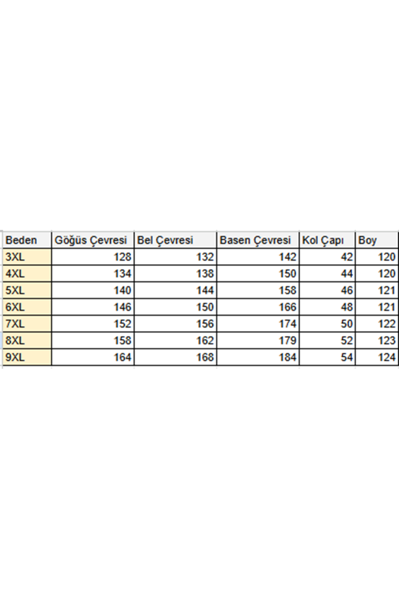 Beden Tablosu