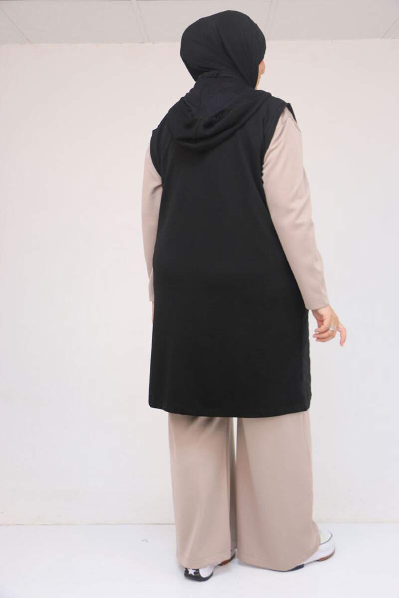 54010 Büyük Beden Kapitone - Modal Yelek - Siyah