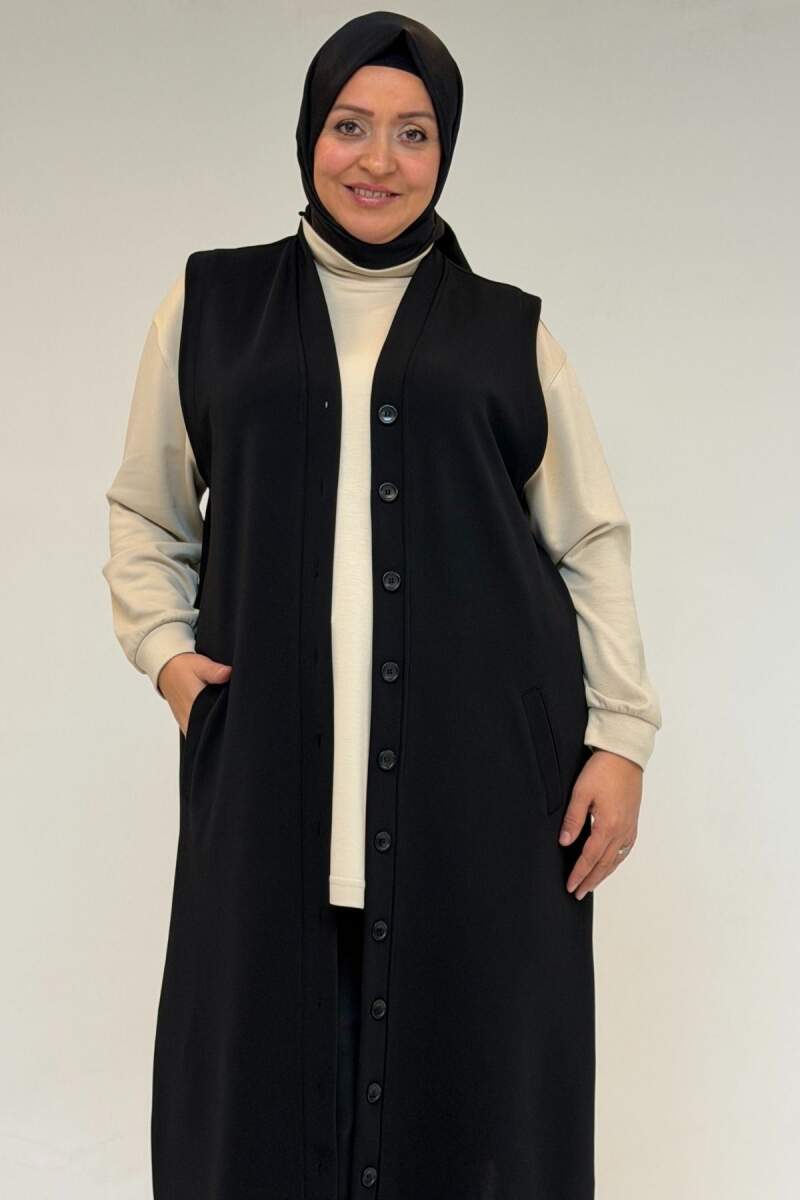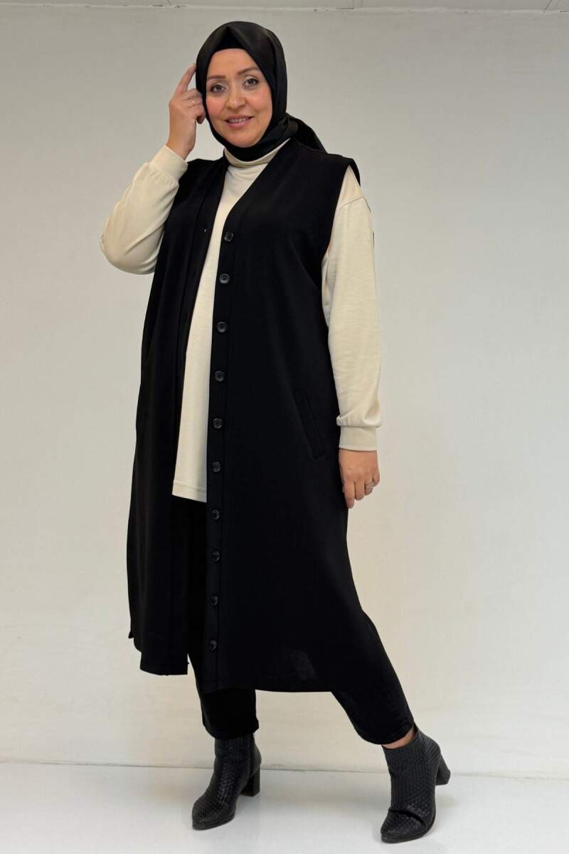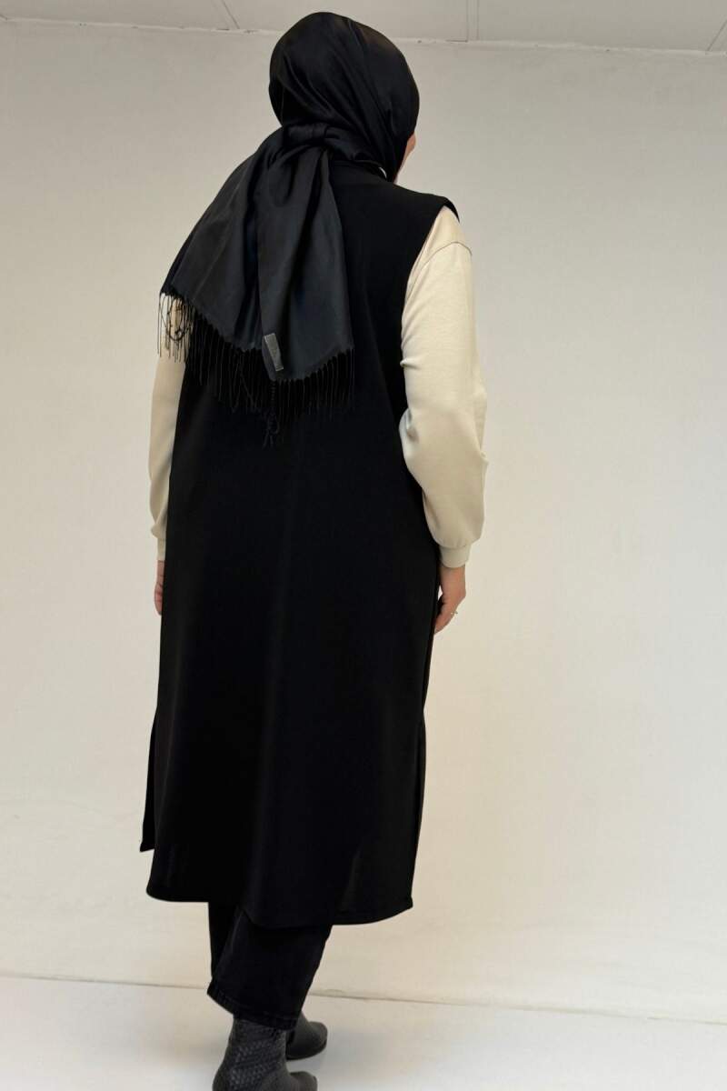 54016 Büyük Beden Yırtmaçlı Uzun Çelik Yelek - Siyah