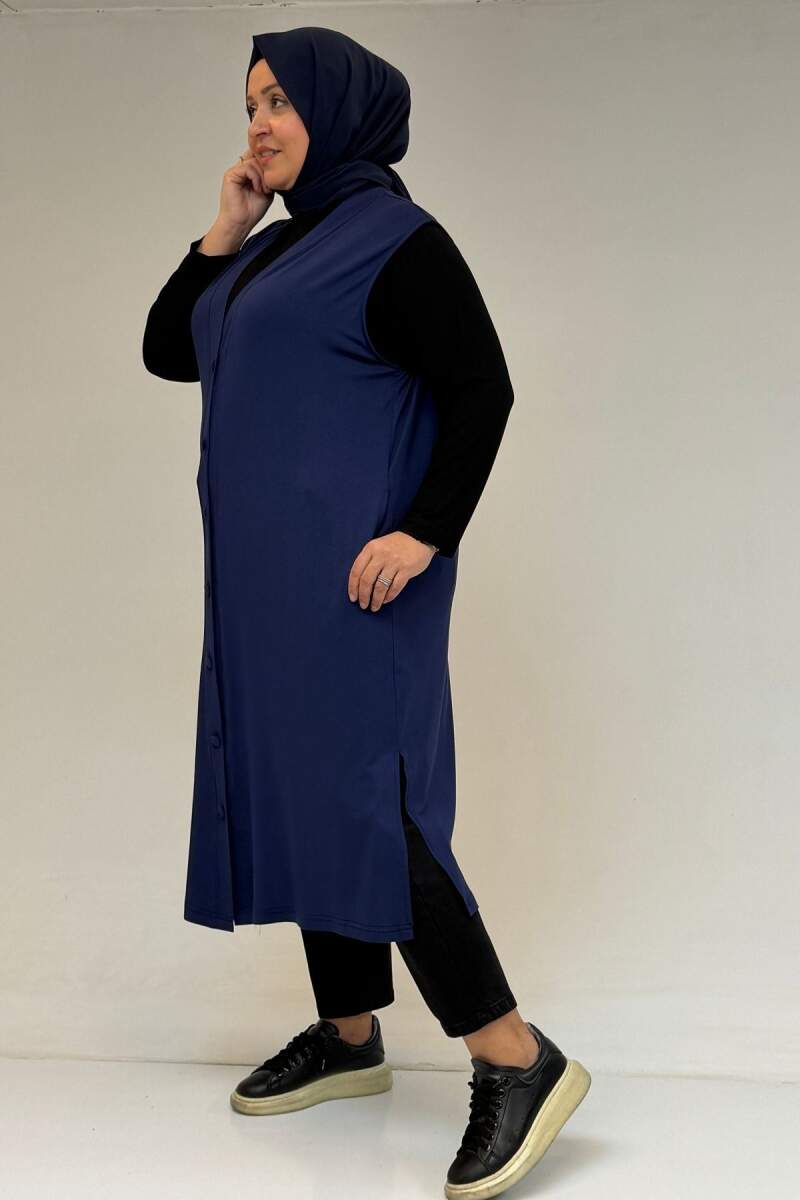 54017 Büyük Bedenkaplama Düğmeli Giy-Çık Penye Yelek - İndigo