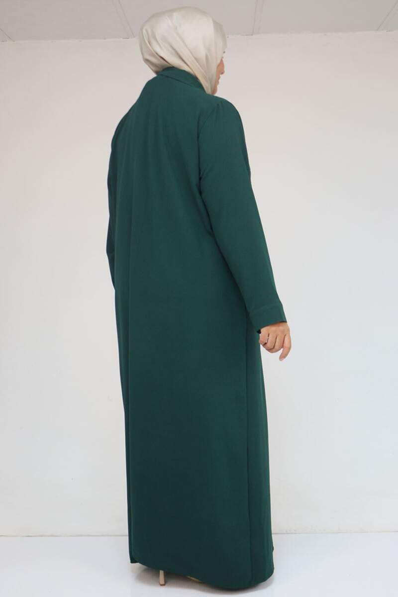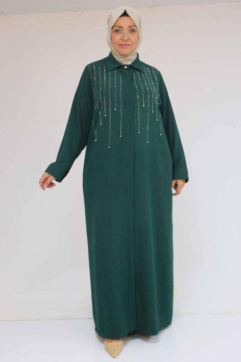 56018 Büyük Beden Taş Baskı Detaylı Krep Ferace - Zümrüt