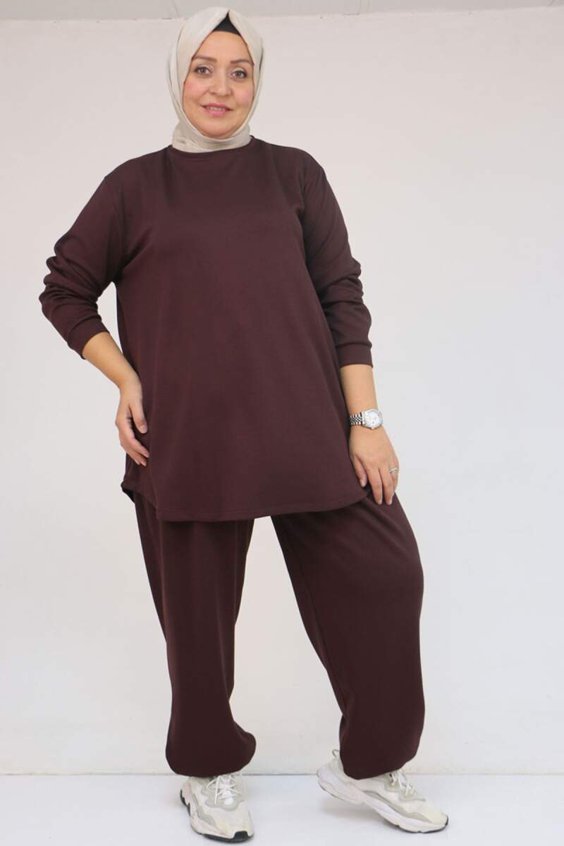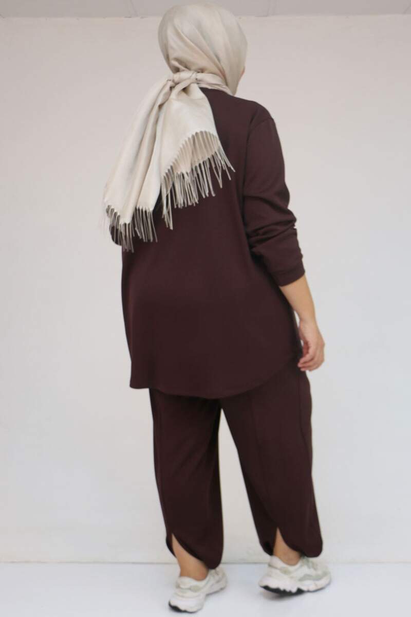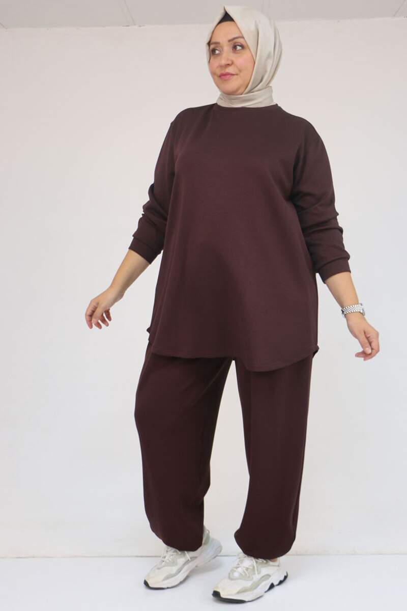 57058 Büyük Beden Pantolonlu Modal İkili Takım - Kahve