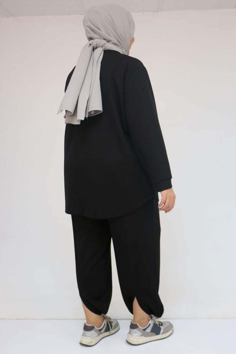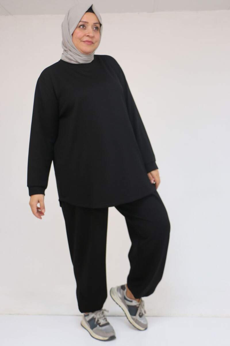 57058 Büyük Beden Pantolonlu Modal İkili Takım - Siyah