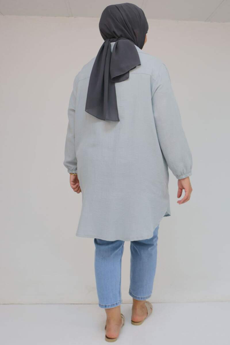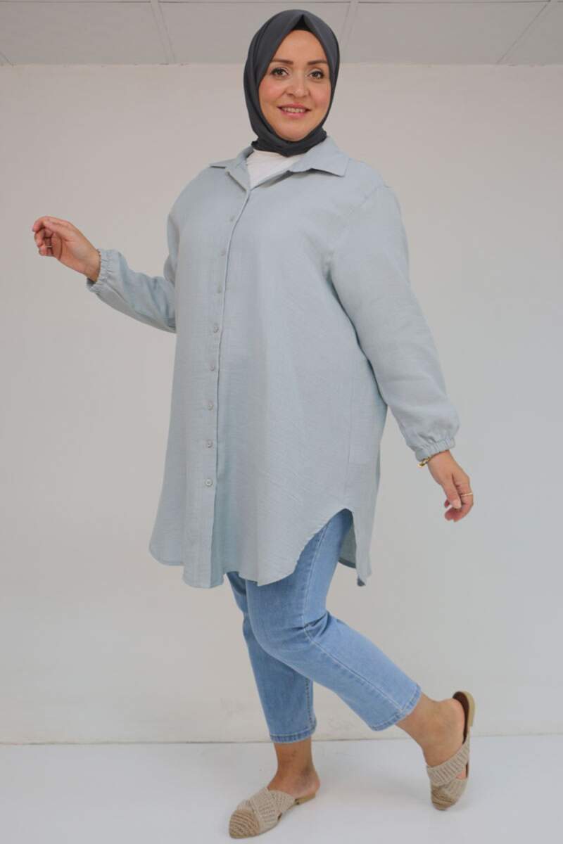 58091 Büyük Beden Kolları Lastikli Müslin Gömlek - Gri