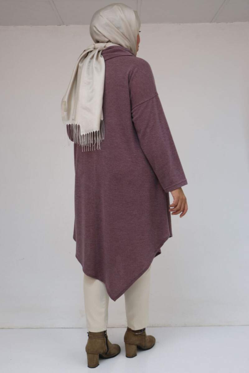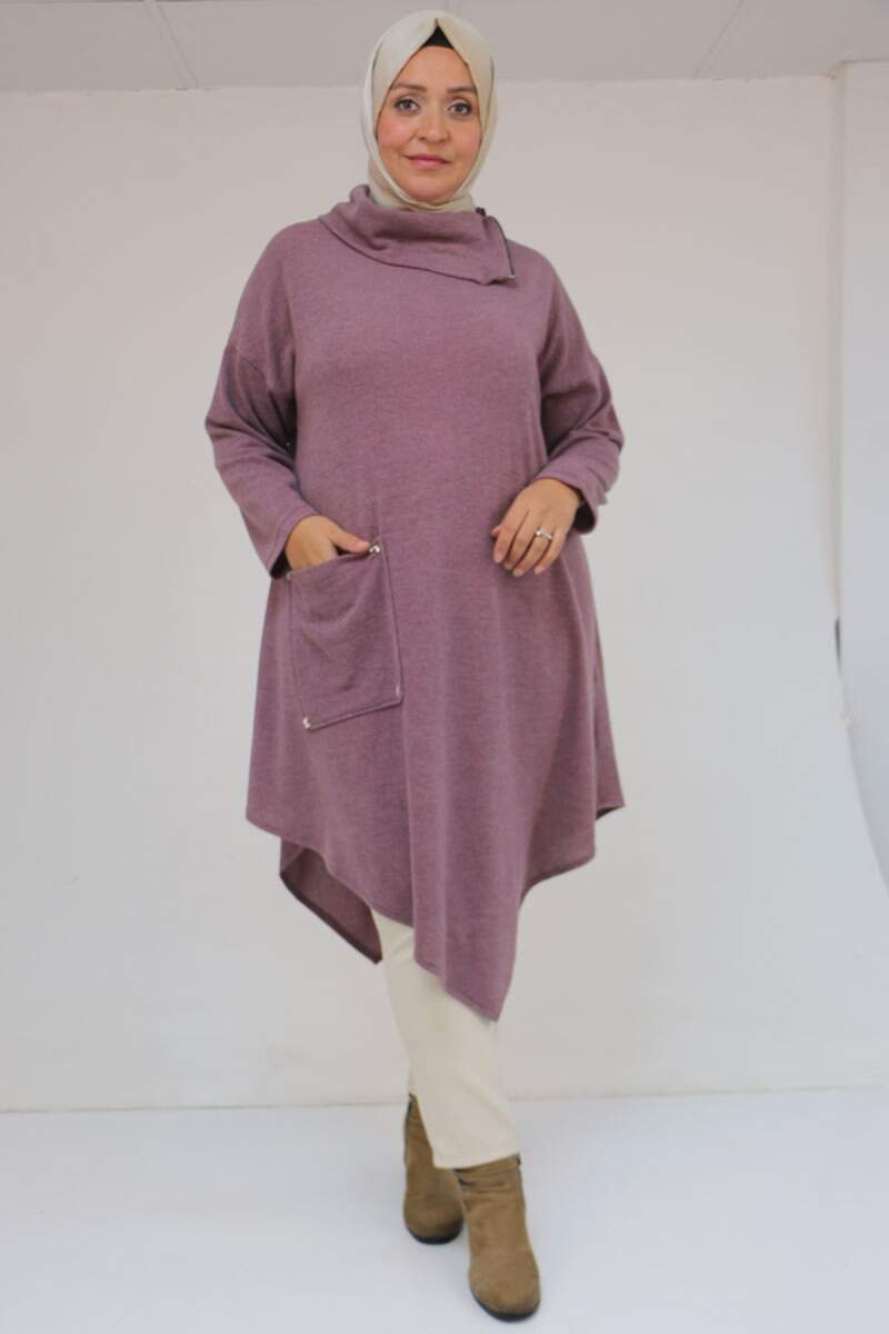 58100 Büyük Beden Yakkasında Fermuar Detaylı Mir Tunik - Gül Kurusu