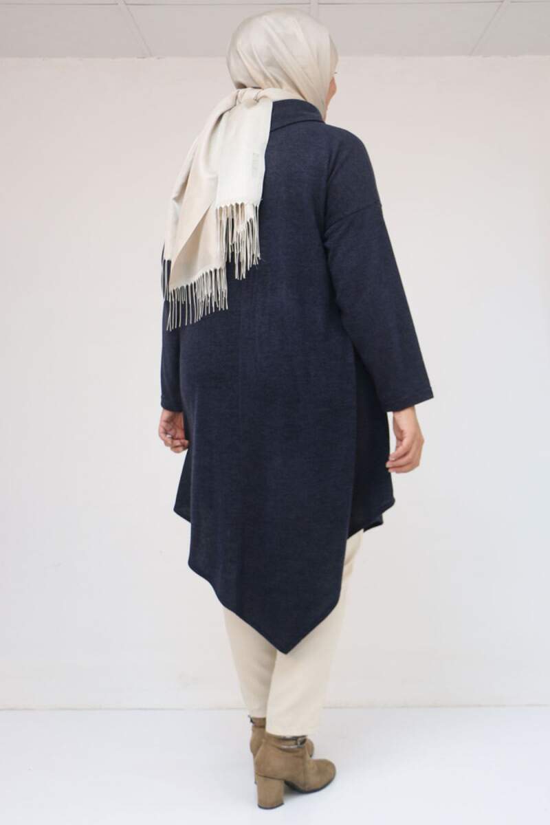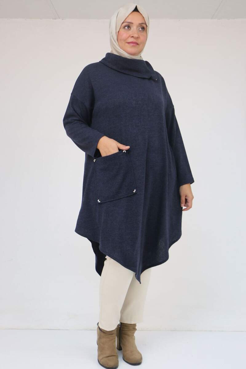 58100 Büyük Beden Yakkasında Fermuar Detaylı Mir Tunik - Lacivert