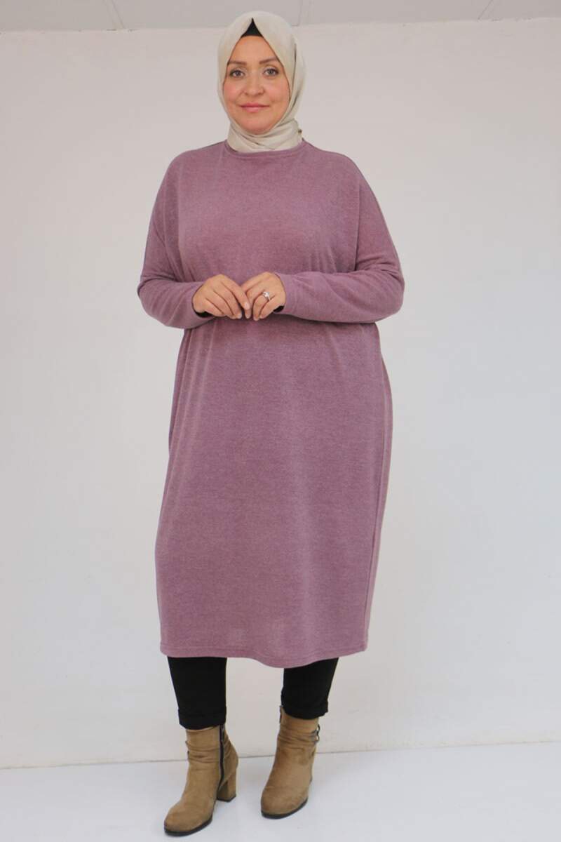 58101 Büyük Beden Düşükkol Mir Tunik - Gül Kurusu