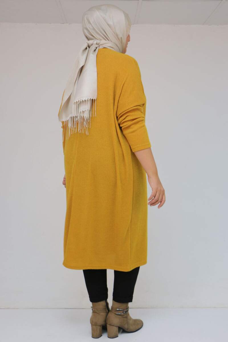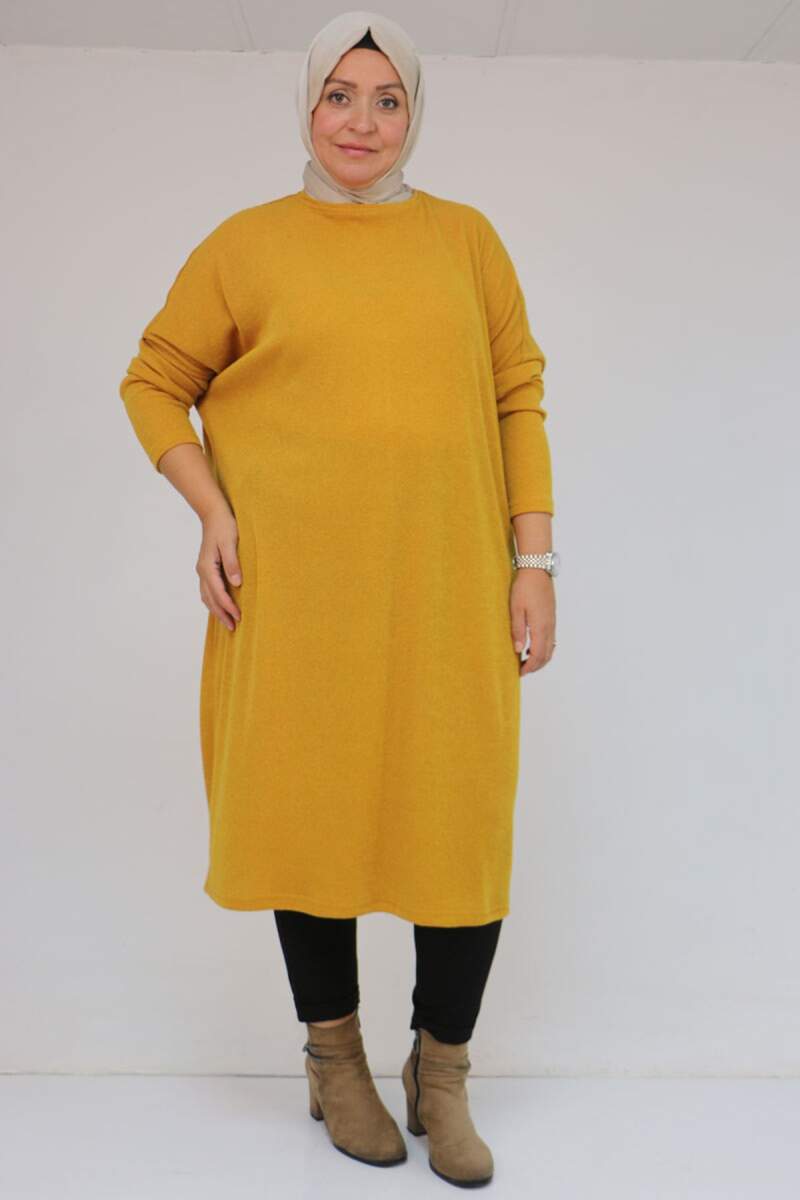 58101 Büyük Beden Düşükkol Mir Tunik - Hardal