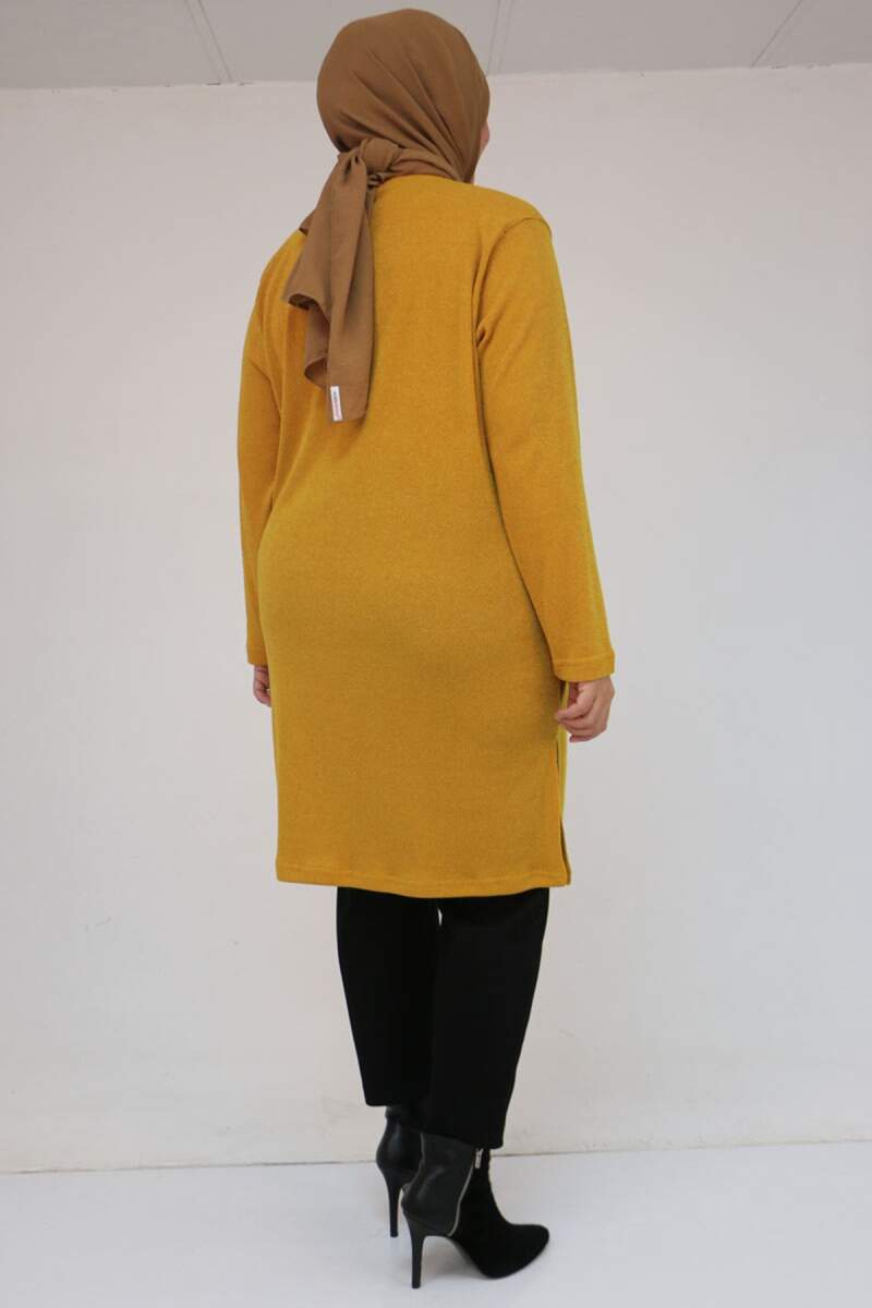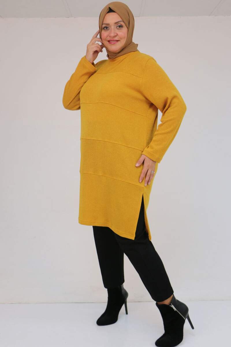 58103 Büyük Beden Biye Detaylı Mir Tunik - Hardal