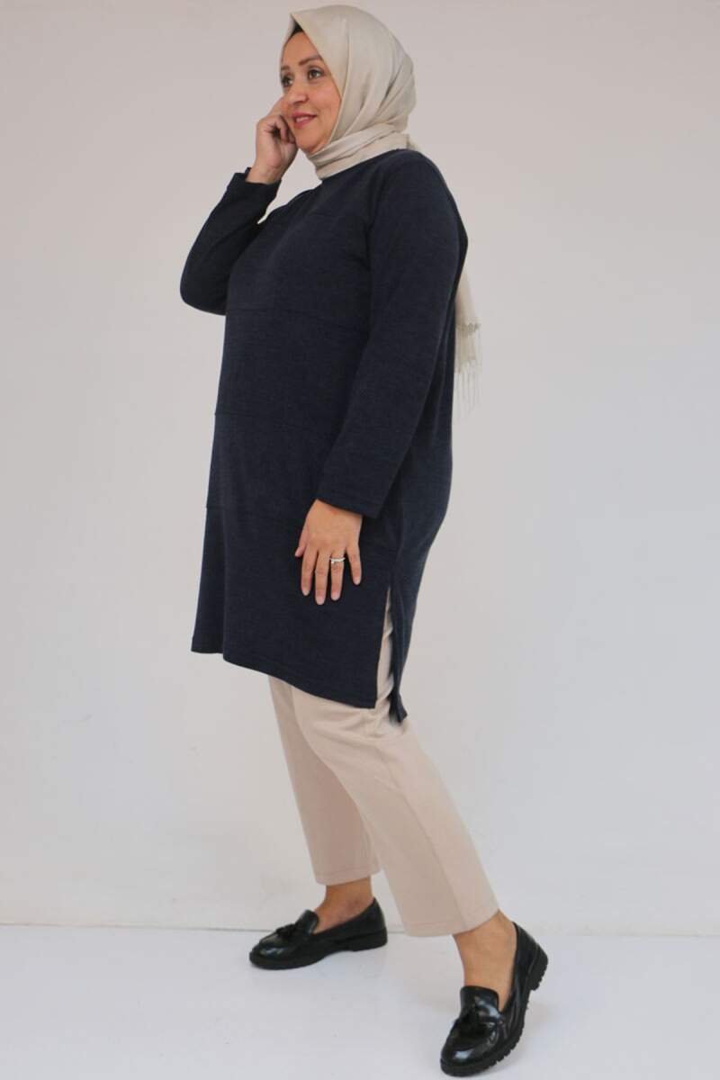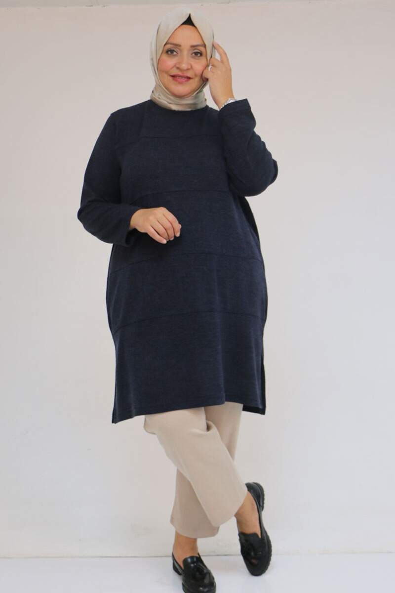 58103 Büyük Beden Biye Detaylı Mir Tunik - Lacivert