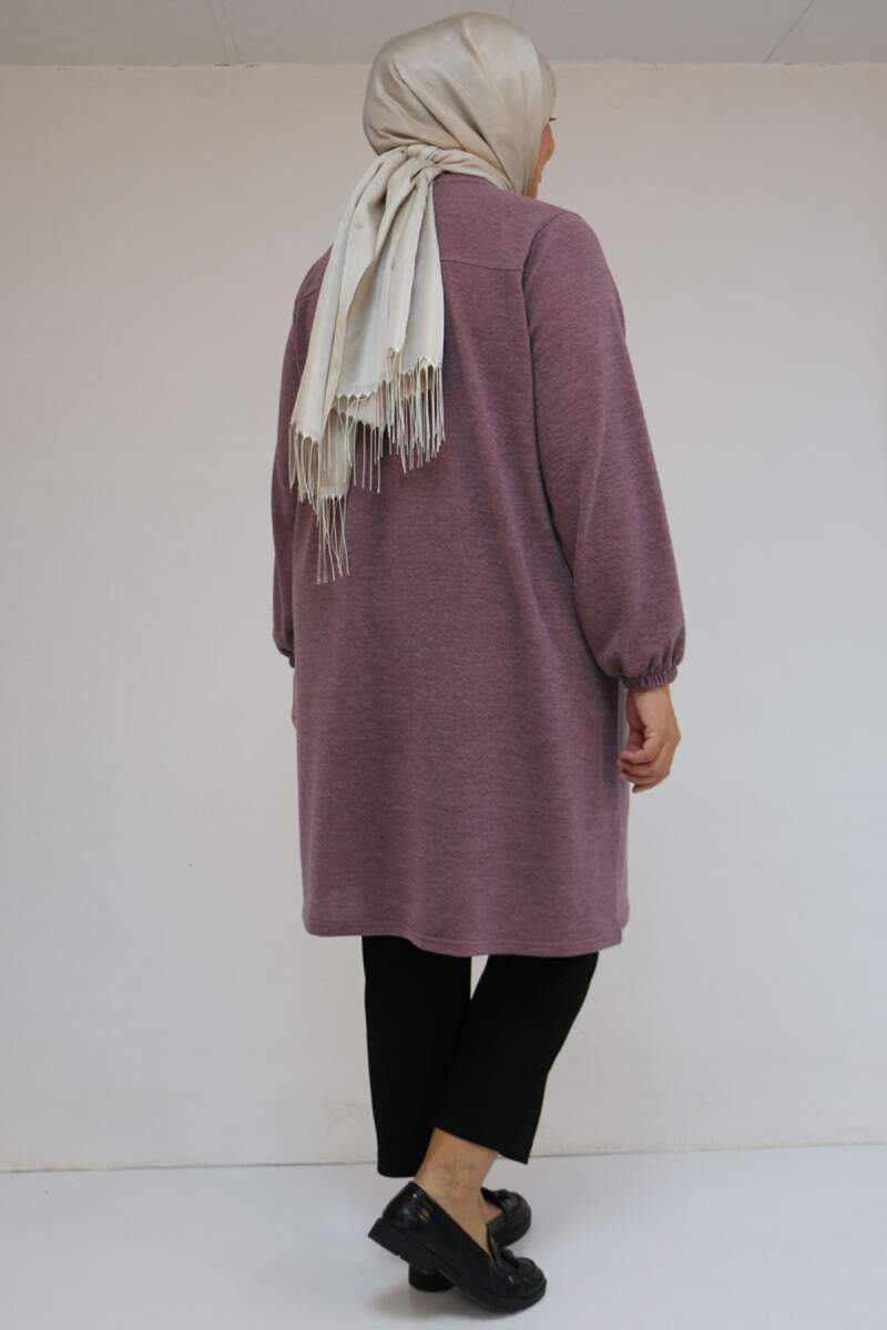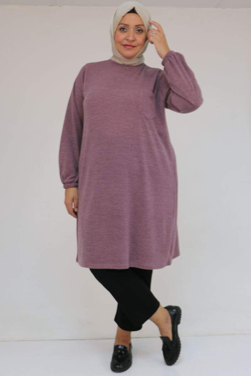 58104 Büyük Beden Kolu Lastikli Cepli Mir Tunik - Gül Kurusu
