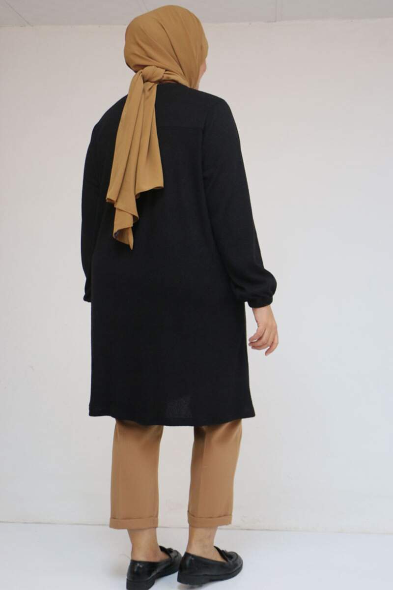 58104 Büyük Beden Kolu Lastikli Cepli Mir Tunik - Siyah