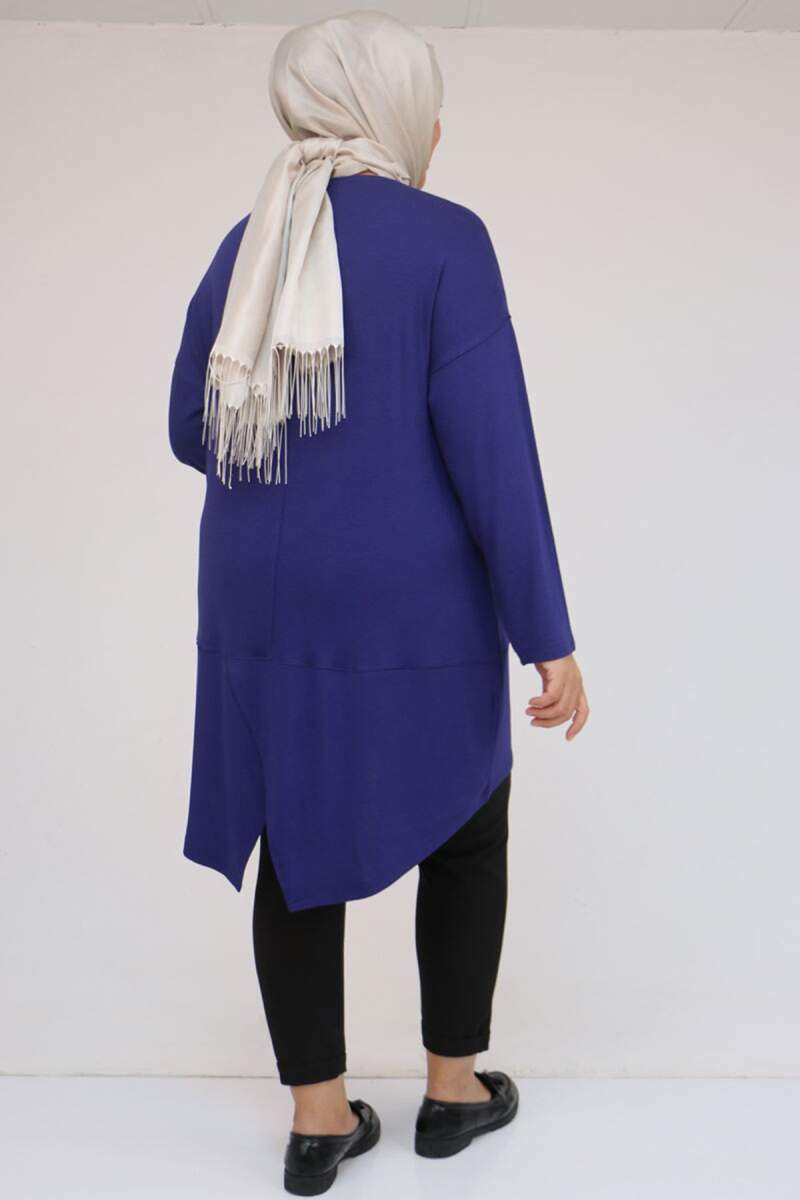 58105 Büyük Beden Arkası Çarpraz Detaylı Çilek Tunik - İndigo