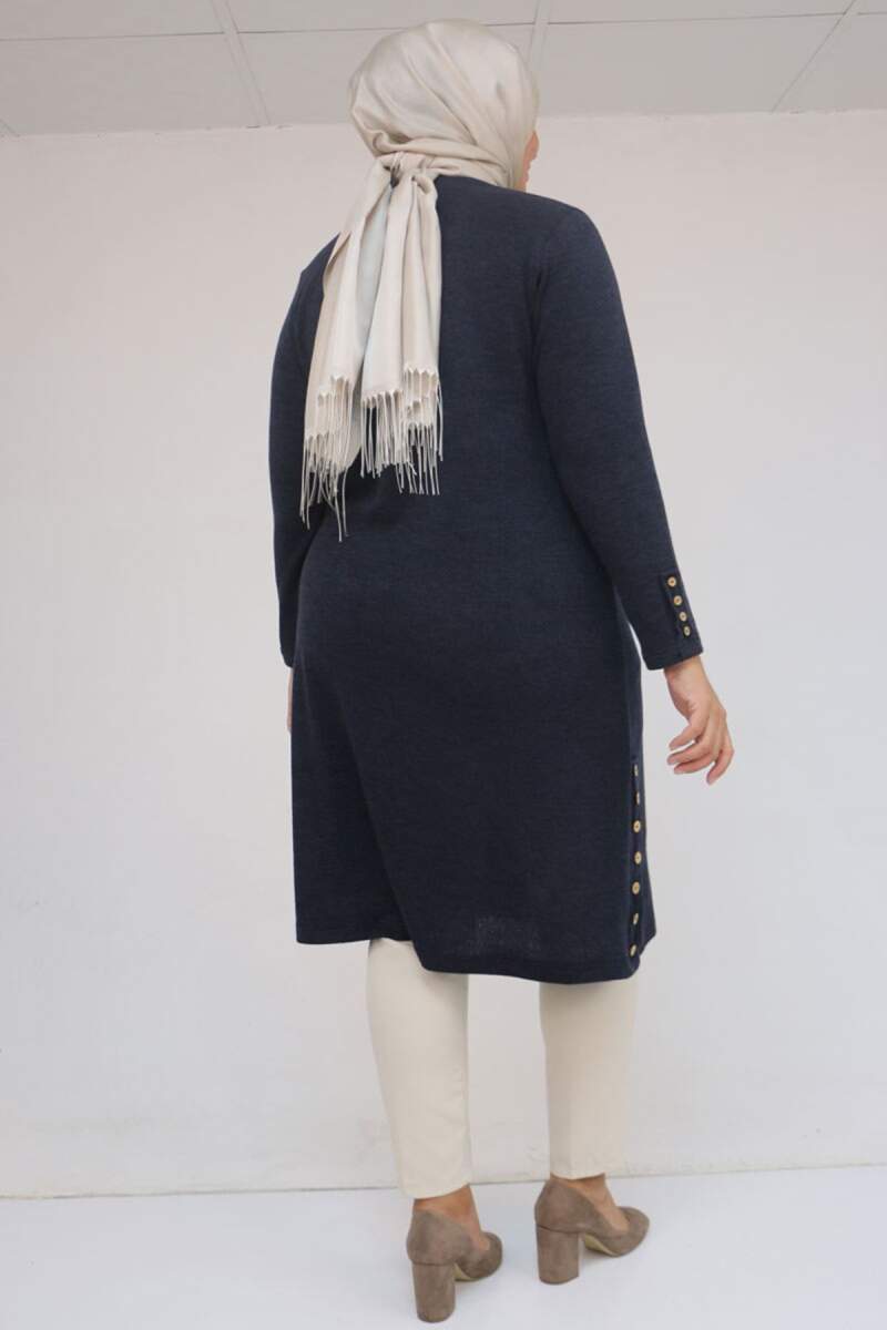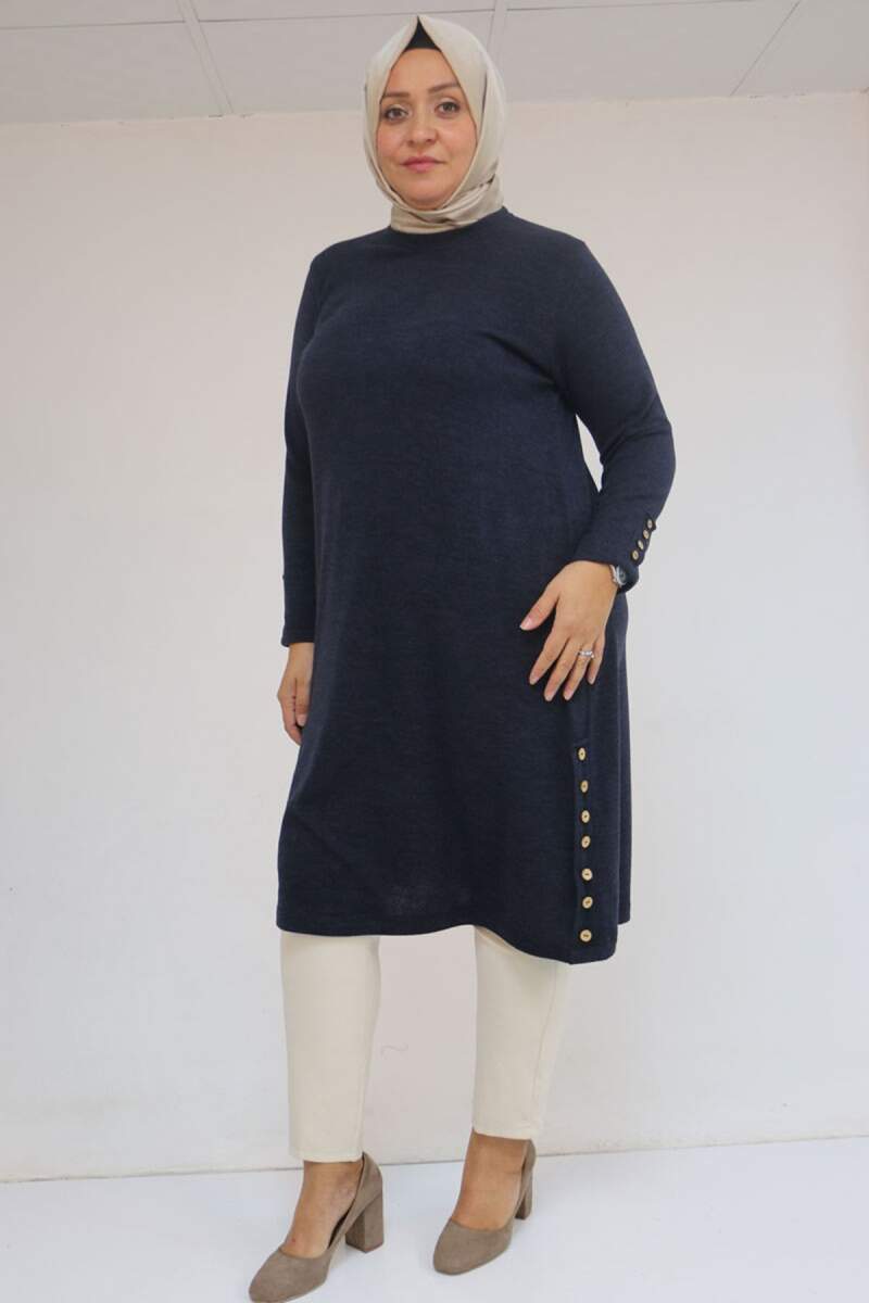 58109 Büyük Beden Patlı Düğmeli Mir Tunik - İndigo