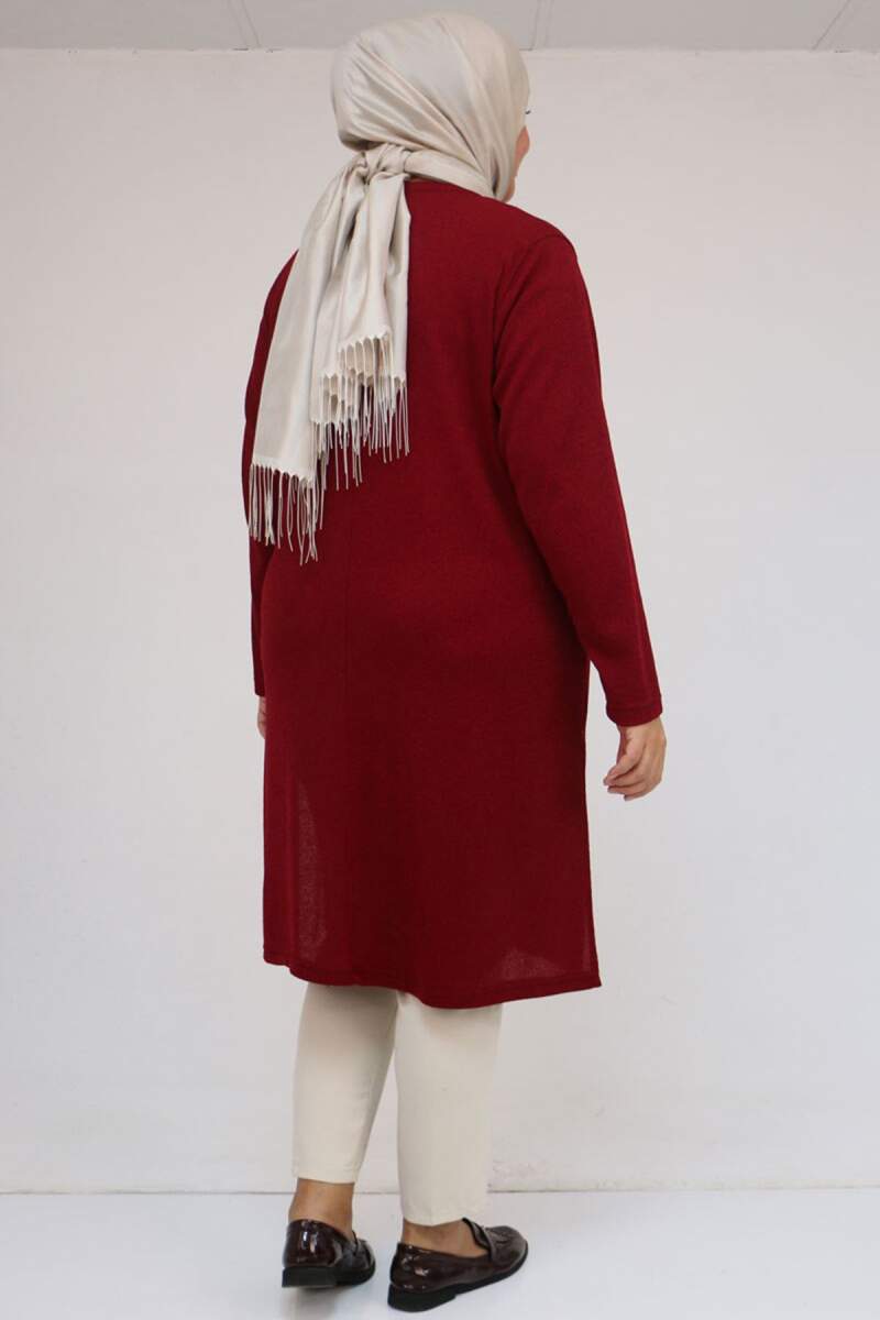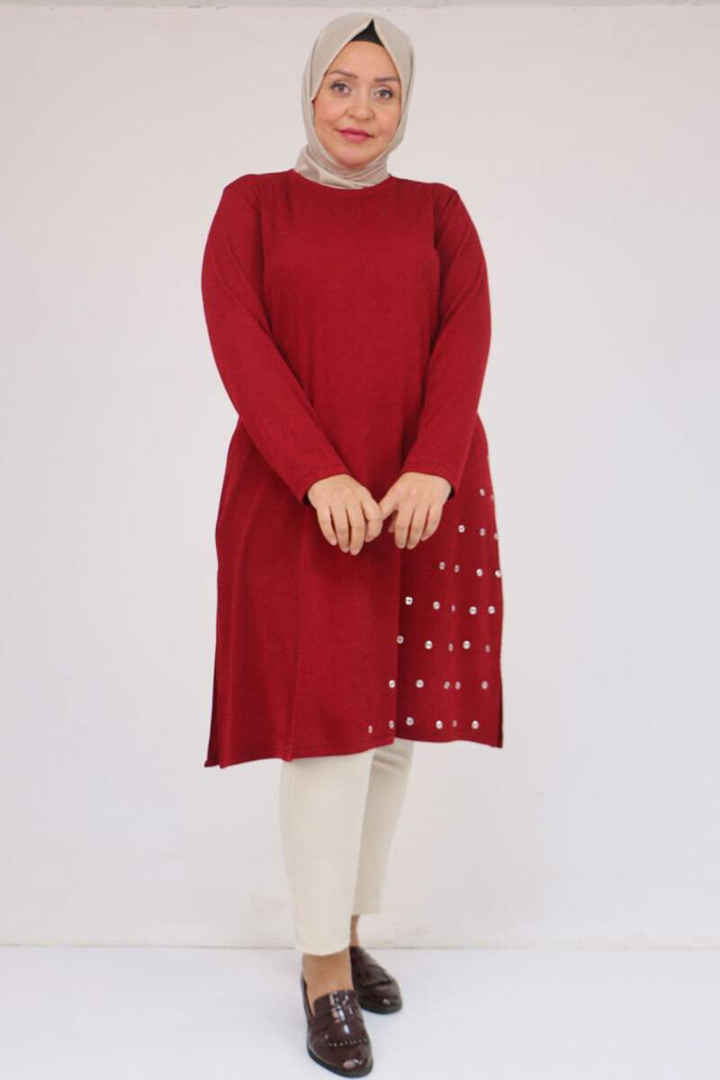 58110 Büyük Beden Yan Dikişinde Kuş Gözü Detaylı Mir Tunik - Bordo