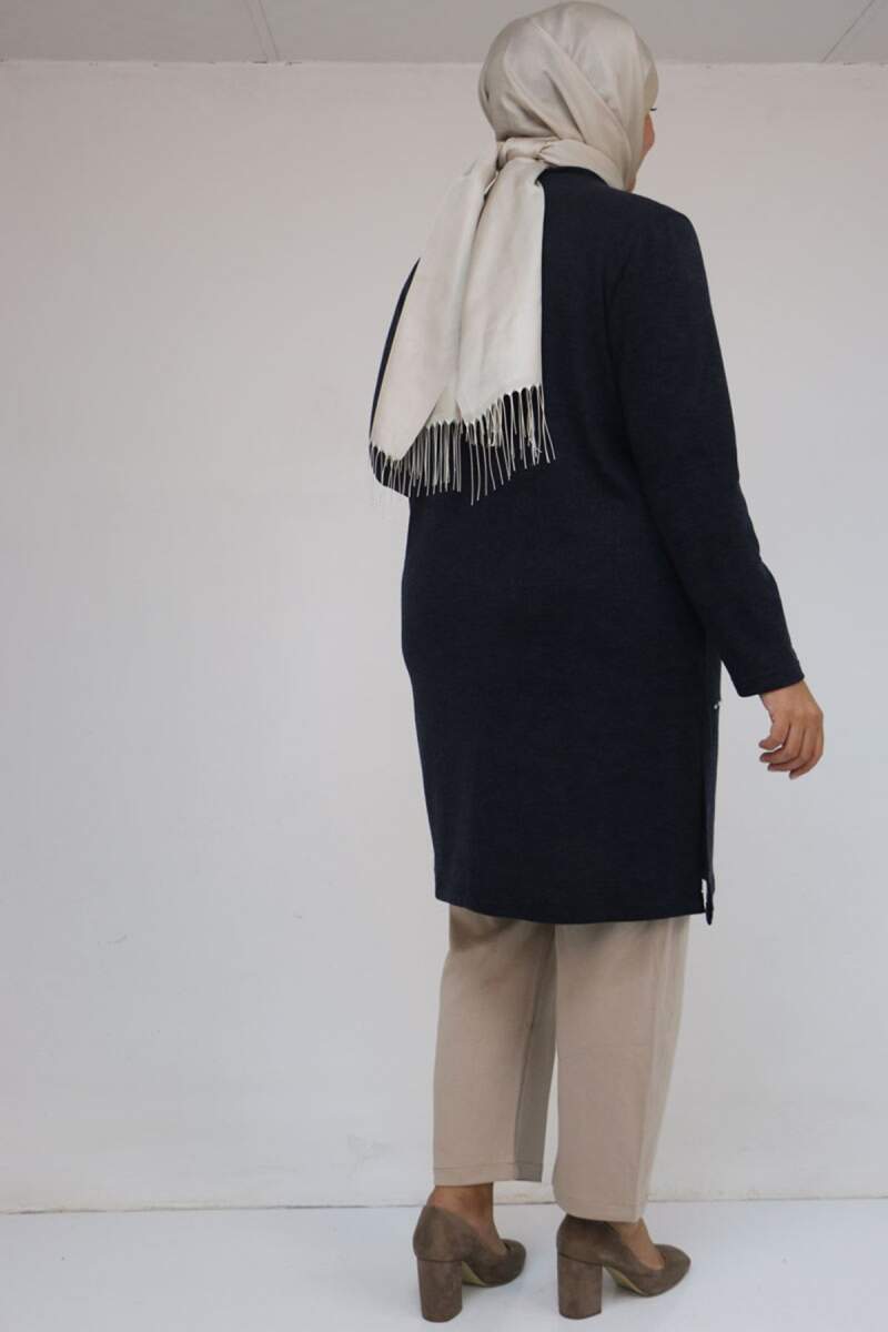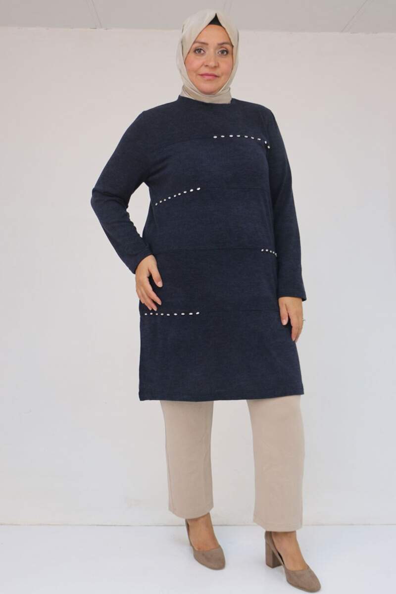 58113 Büyük Beden Dikme Taş Detaylı Çımalı Mir Tunik - Lacivert