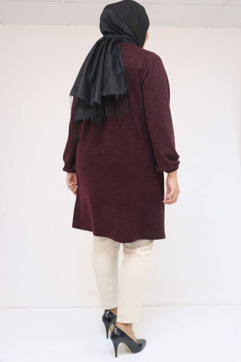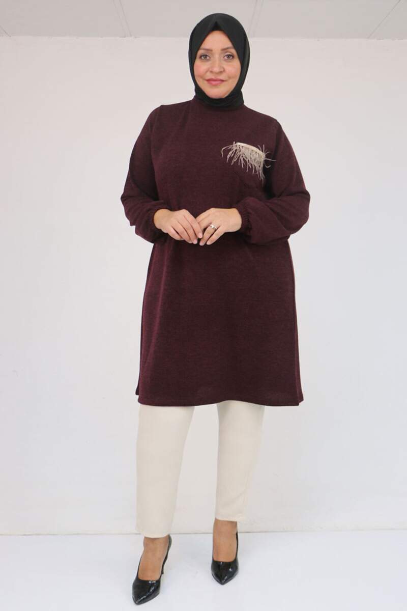58114 Büyük Beden Kolları Lastikli Cebi Püskül Detaylı Mir Tunik - Mürdüm