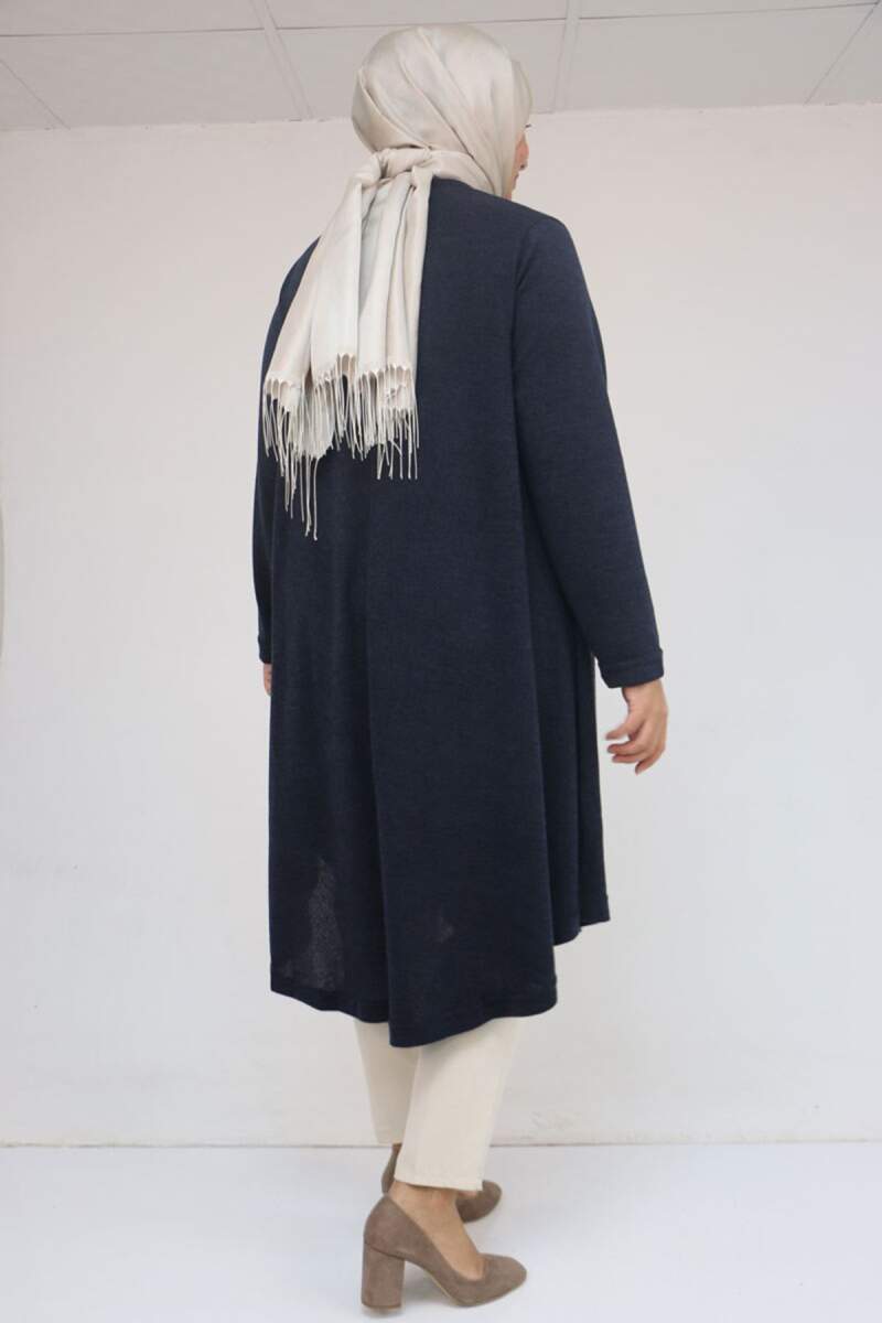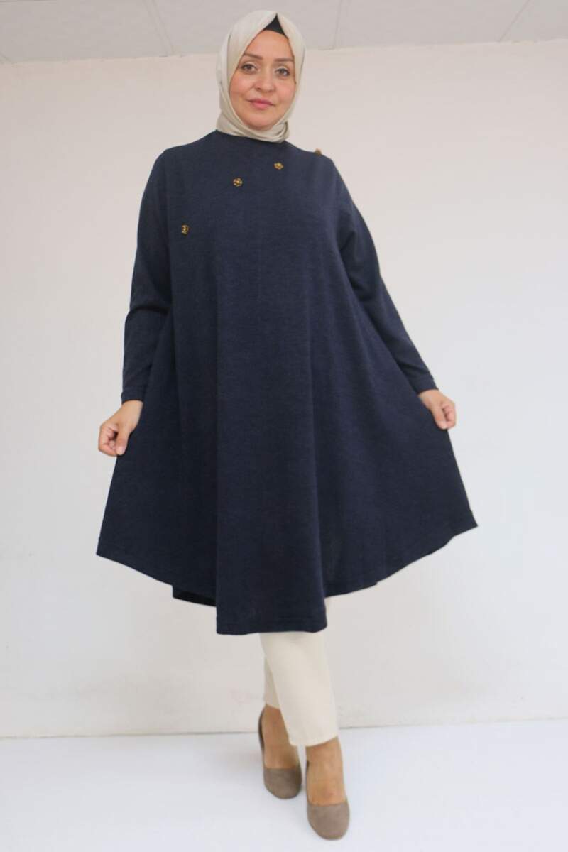 58118 Büyük Beden Çiçek Detaylı Mir Mevlana Tunik - Lacivert