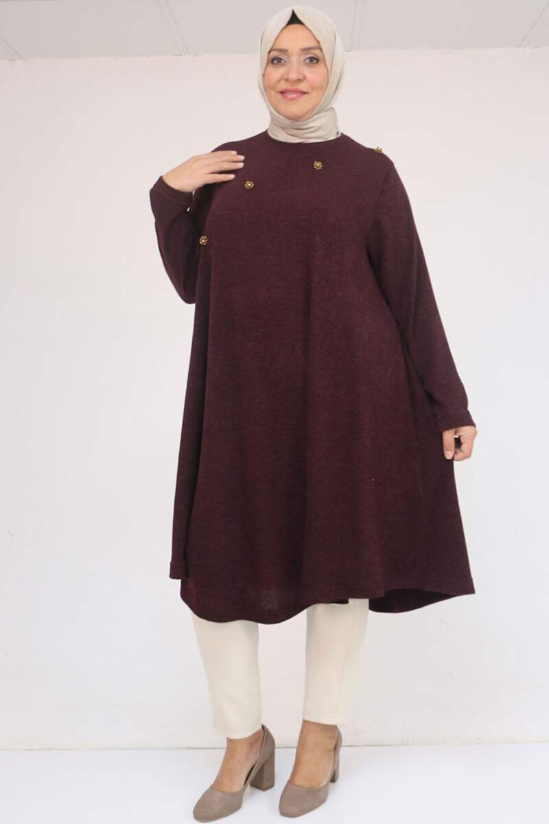 58118 Büyük Beden Çiçek Detaylı Mir Mevlana Tunik - Mürdüm