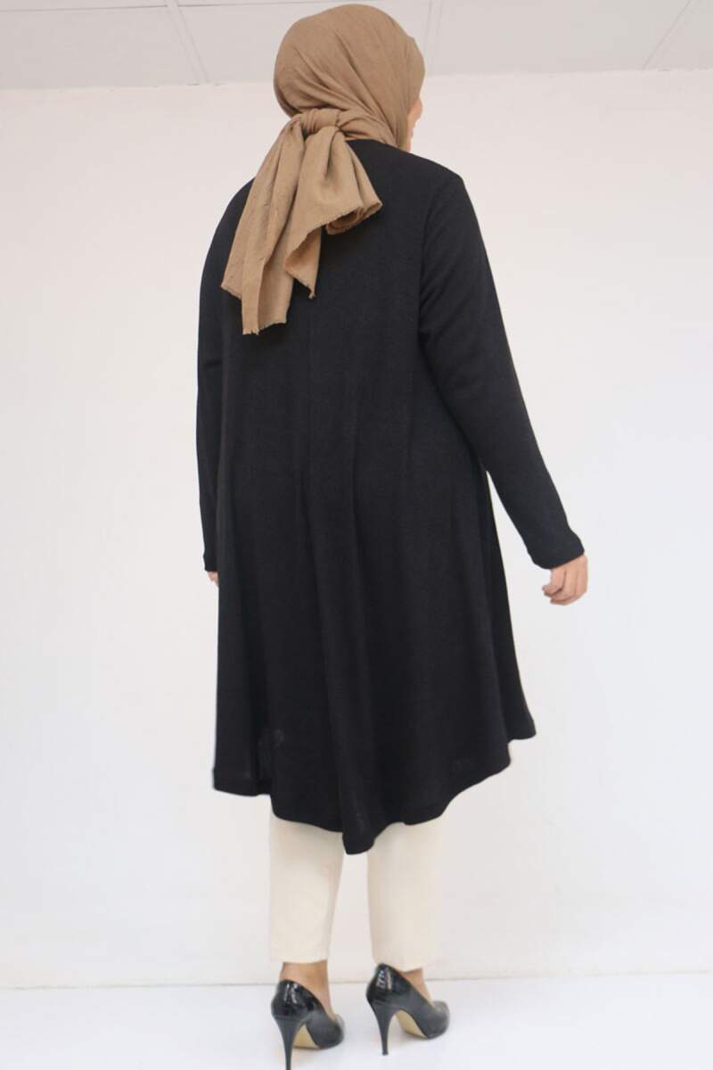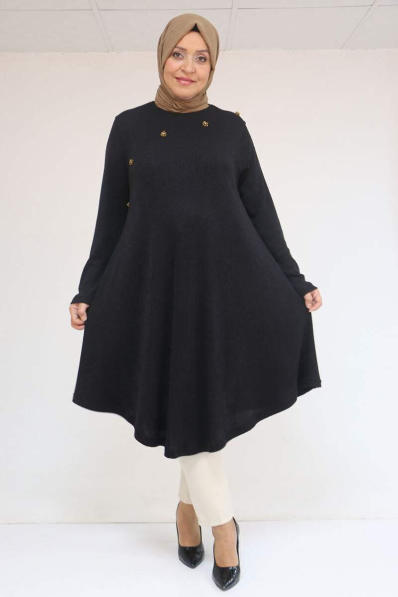 58118 Büyük Beden Çiçek Detaylı Mir Mevlana Tunik - Siyah