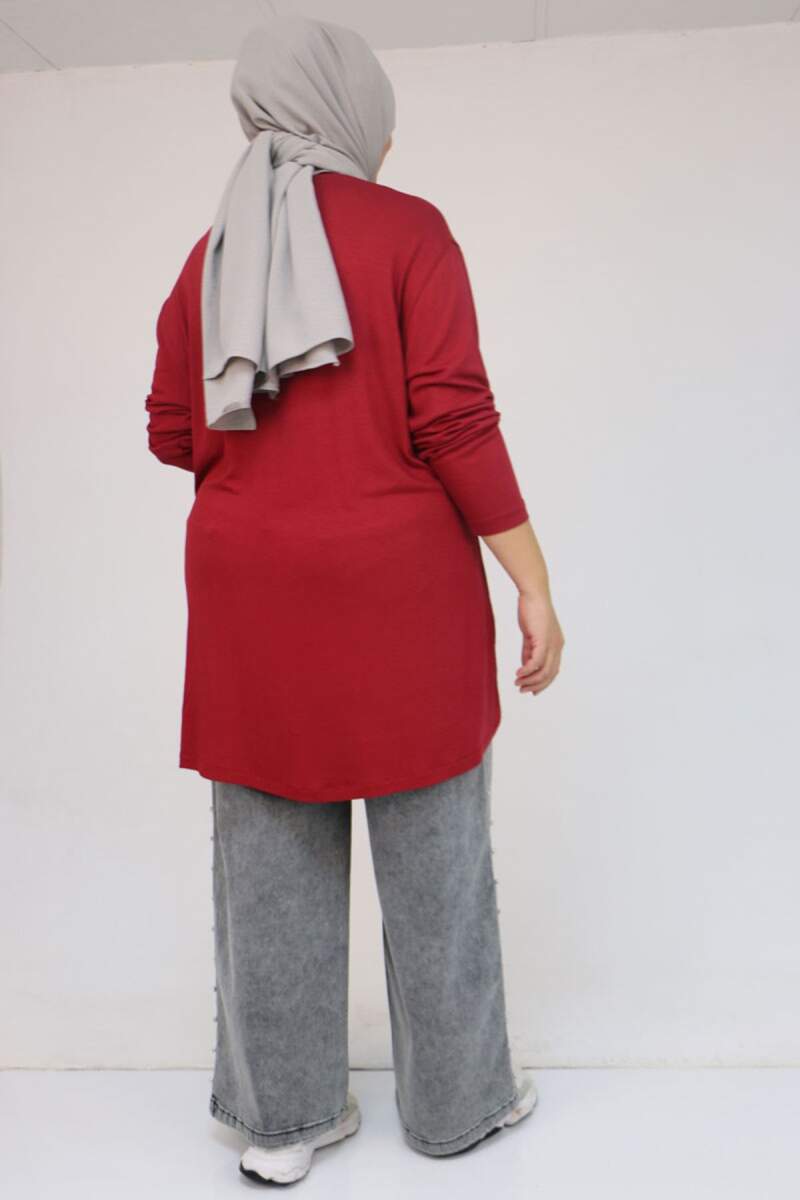 58121 Büyük Beden Yanları Biyeli Çilek Tunik - Bordo